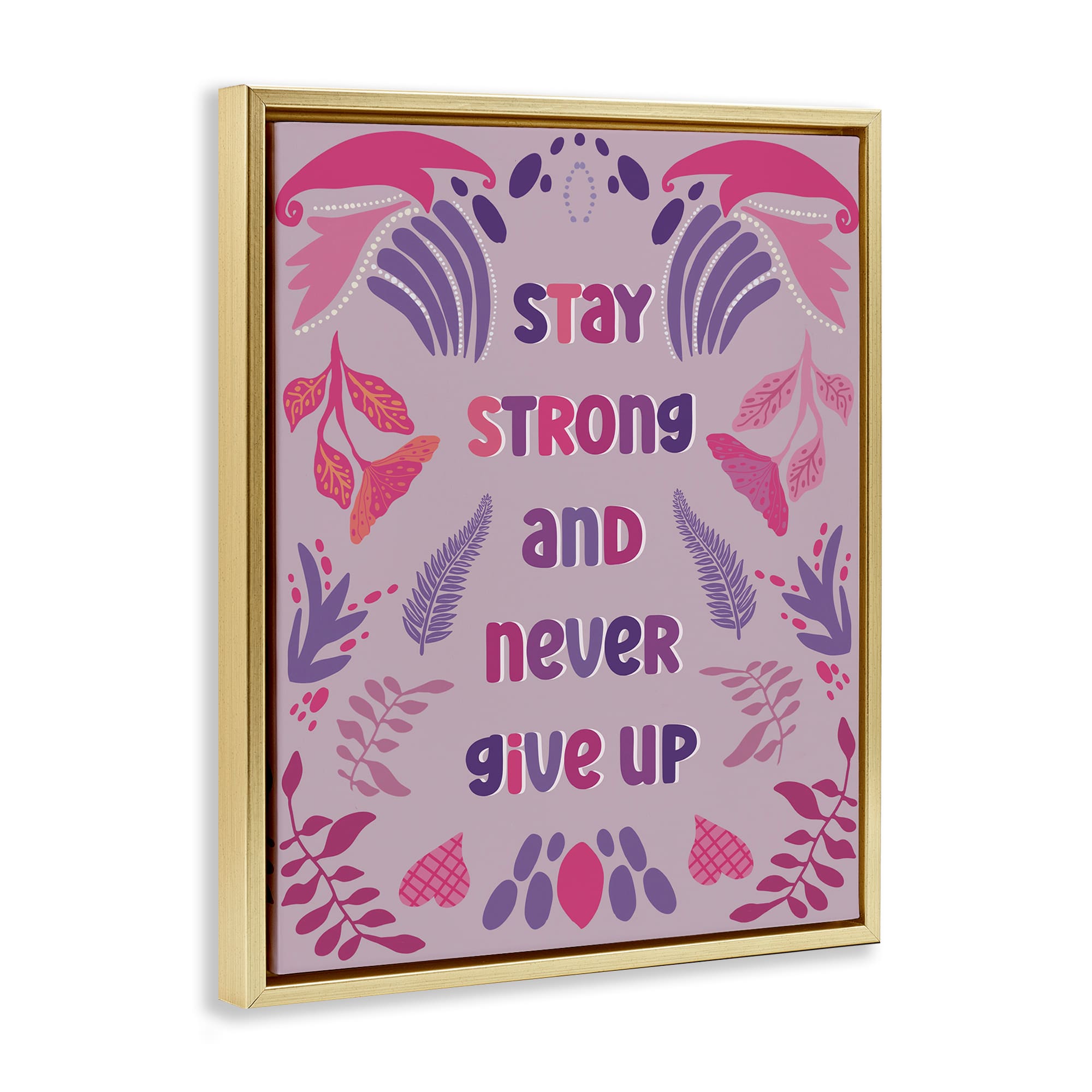 Stupell Industries Never Give Up on Purple Gold Framed Floater Canvas Wall Art By Julia Fox 17 x 21