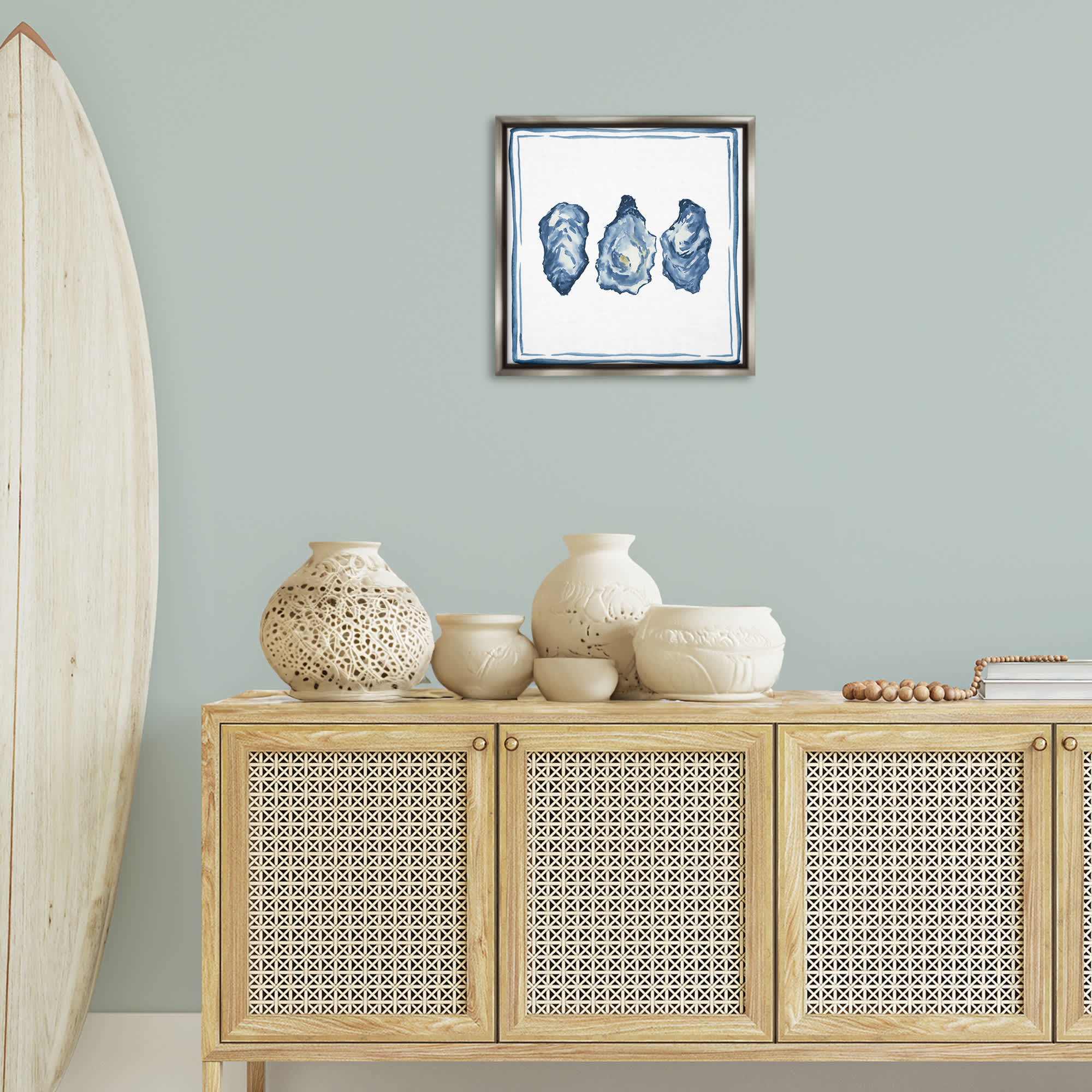 Stupell Industries Oyster Shell Trio Gray Framed Floater Canvas Wall Art By Lucille Price 18 x 18