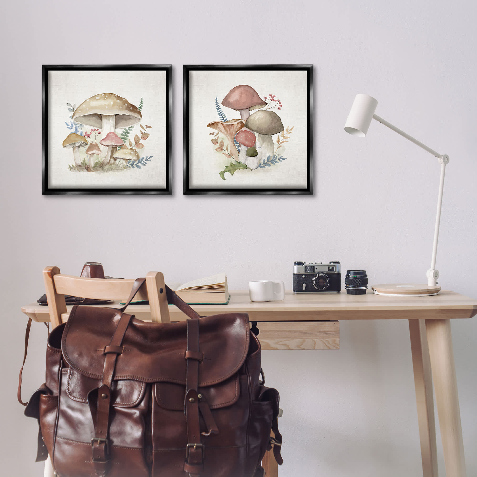 Stupell Industries Pastel Blooming Mushrooms 2 Piece Black Framed Floater Canvas Set By Mollie B. 18 x 18