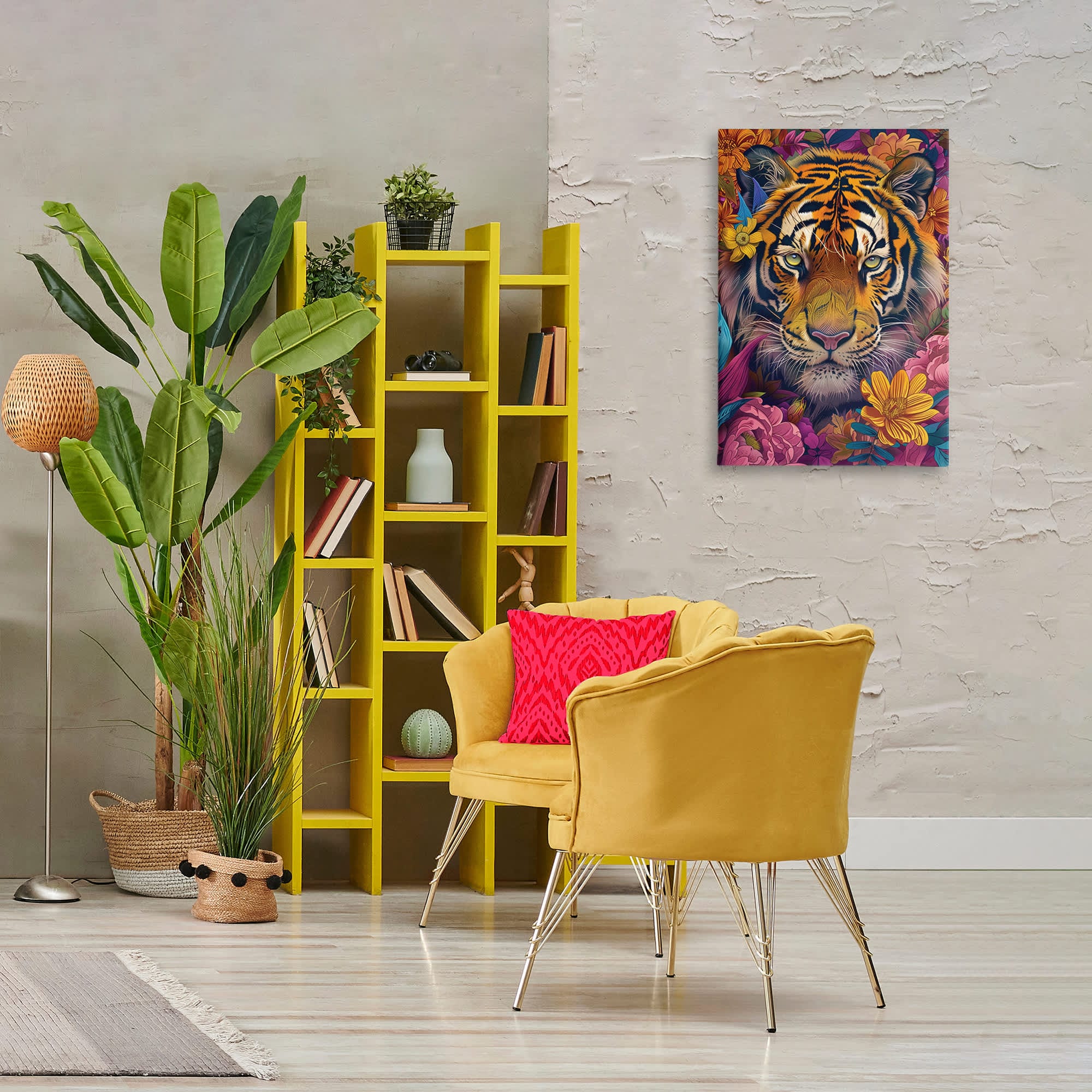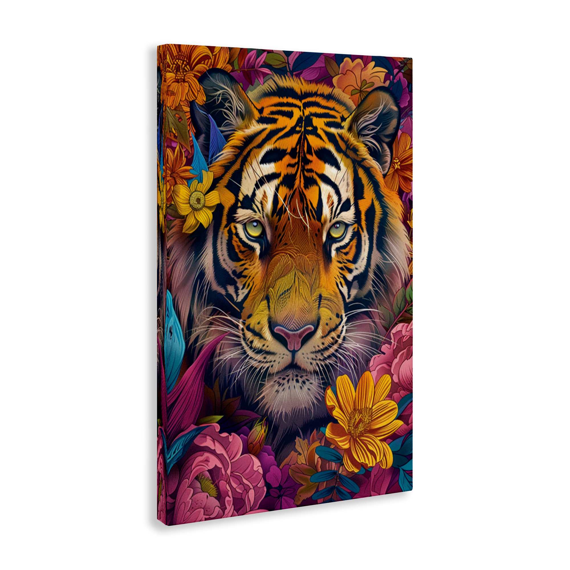 Stupell Industries Peering Tiger Through Flowers Canvas Wall Art By LSR Design Studio 20 x 30
