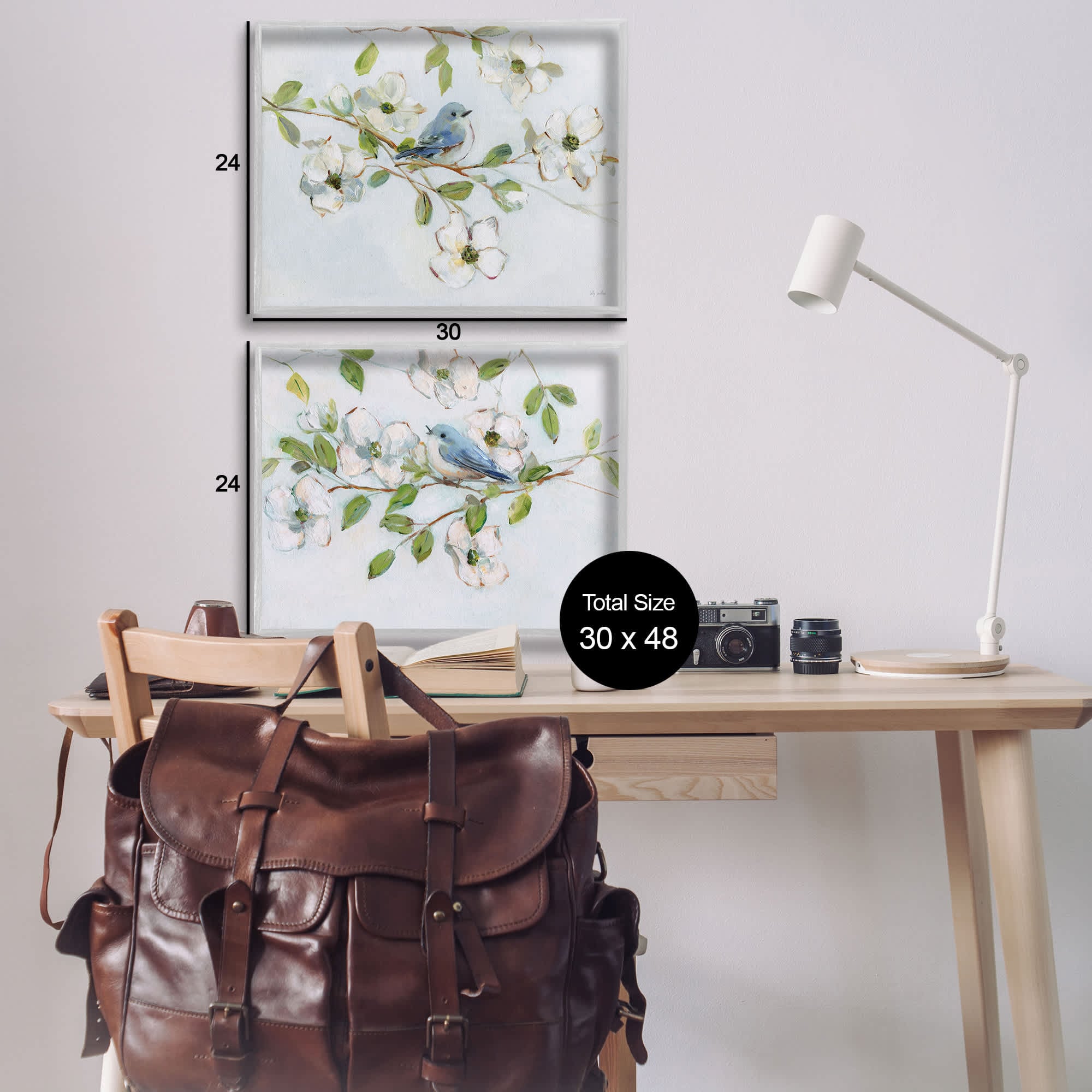 Stupell Industries Perched Bluebirds on Branch 2 Piece Gray Framed Giclee Art Set By Sally Swatland 30 x 24
