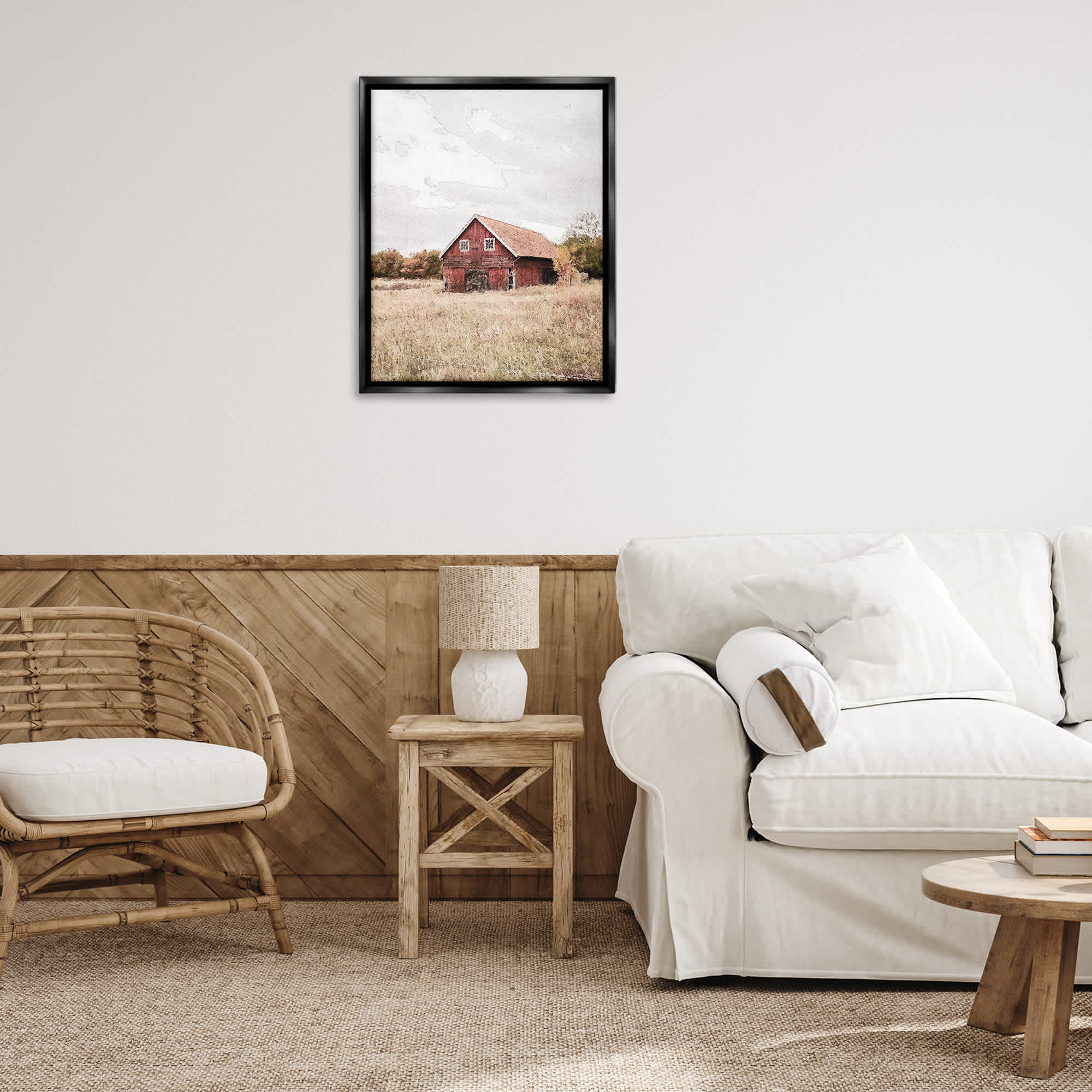 Stupell Industries Red Barn Country Terrain Black Framed Floater Canvas Wall Art By Susan Ball 25 x 31