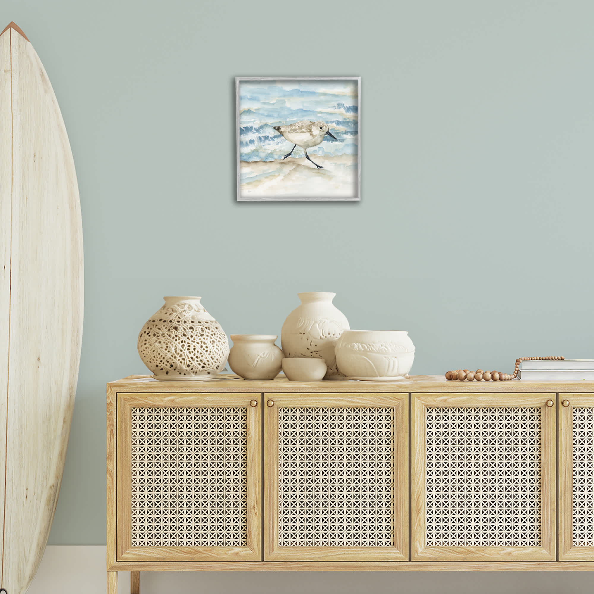 Stupell Industries Sandpiper Striding Shore Gray Framed Giclee Art By Nan 17 x 17