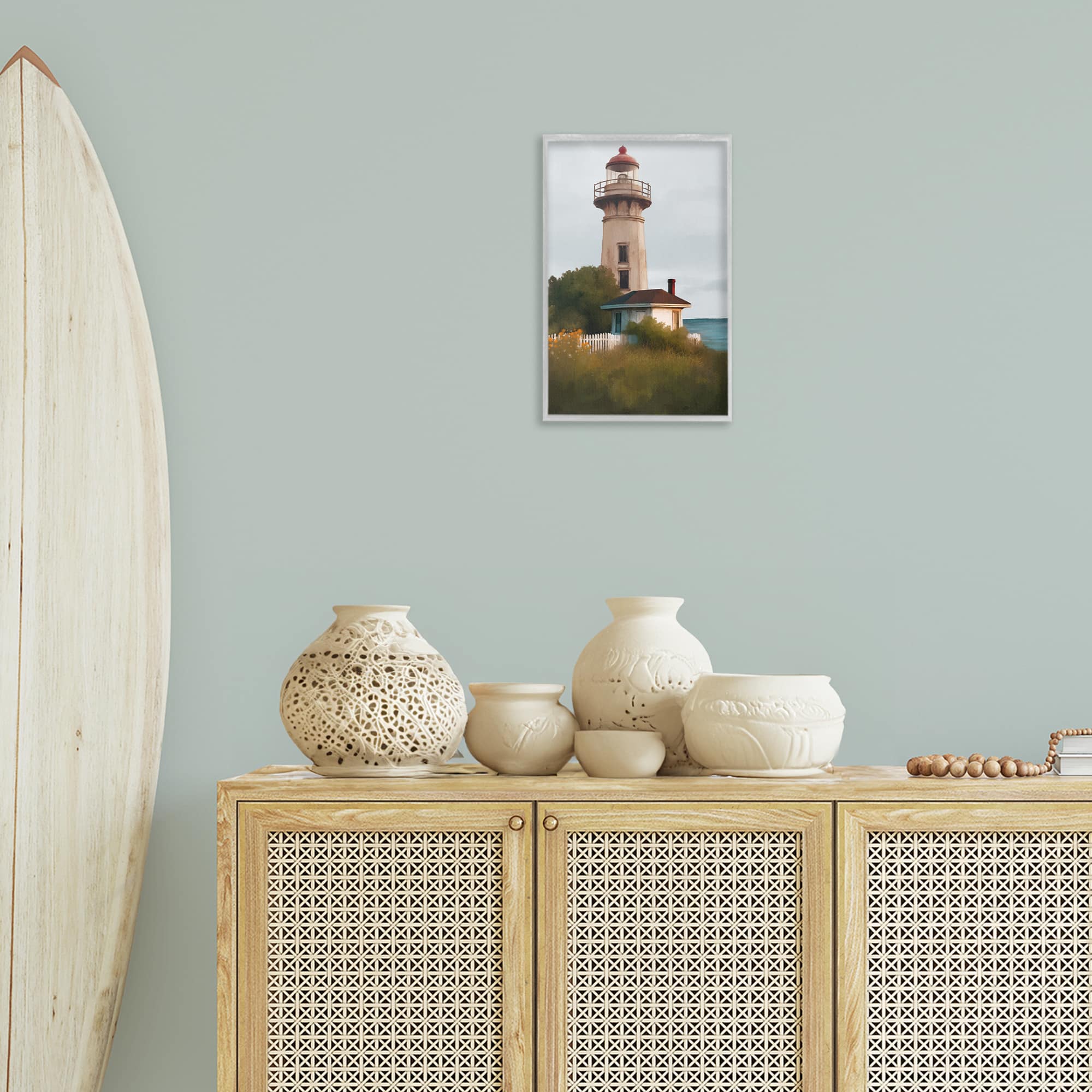 Stupell Industries Scenic Summer Lighthouse View Gray Framed Giclee Art By Elizabeth Medley 12 x 18