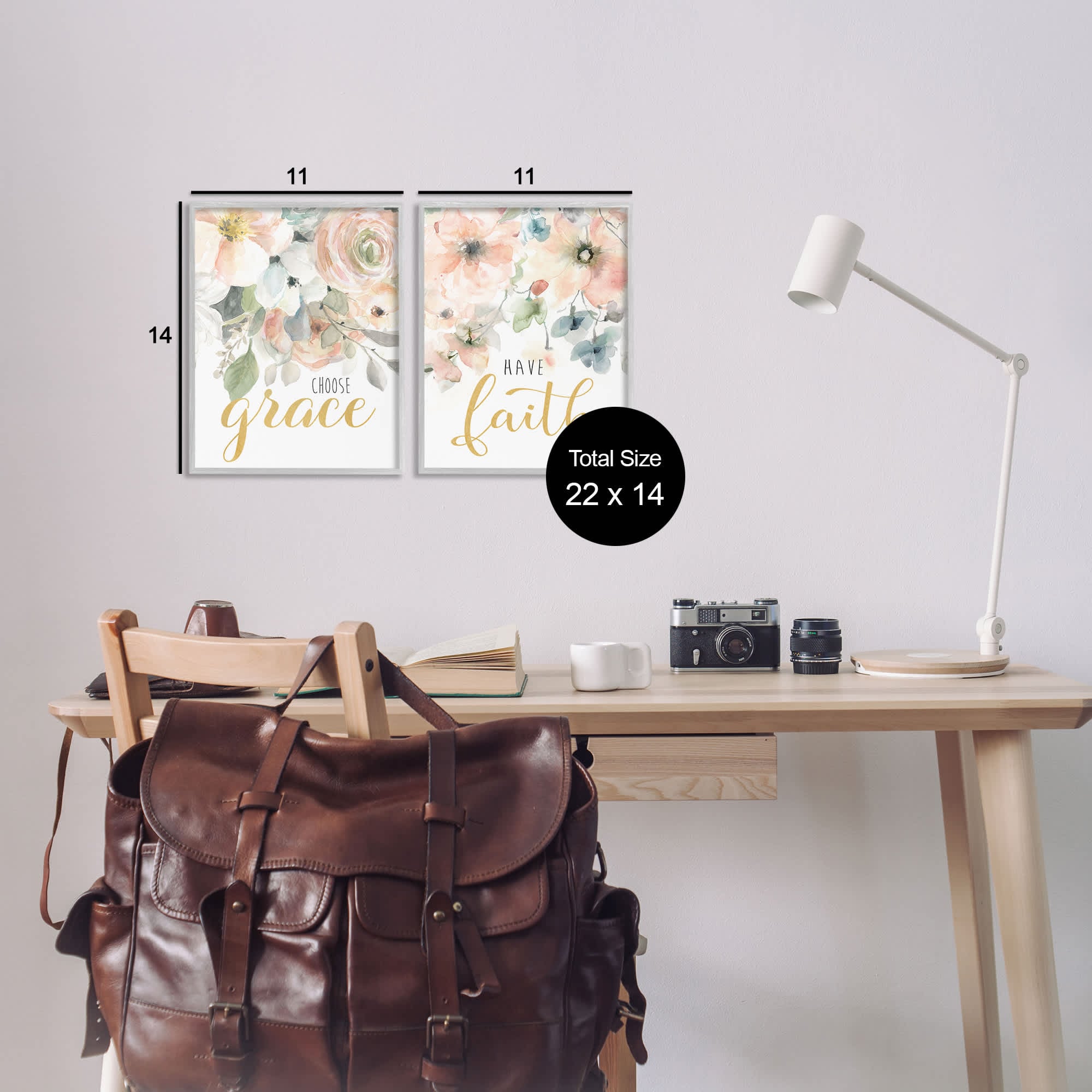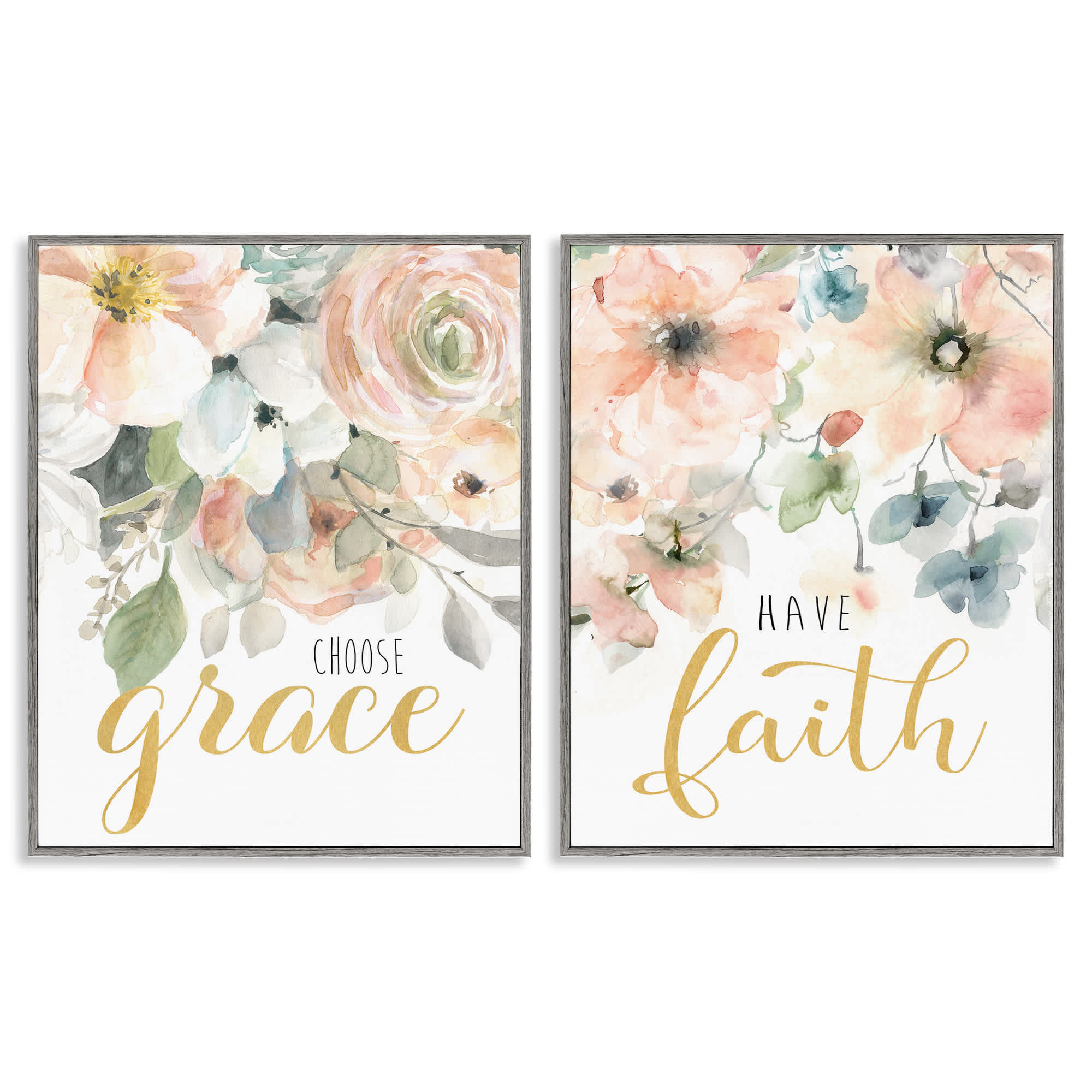 Stupell Industries Spiritual Phrases on Florals 2 Piece Gray Framed Giclee Art Set By Carol Robinson 11 x 14
