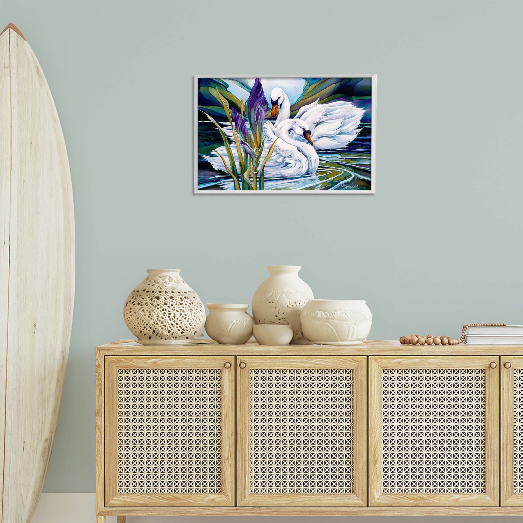 Stupell Industries Swans with Abstract Pond Ripples White Framed Giclee Art By Jody Bergsma 24 x 16