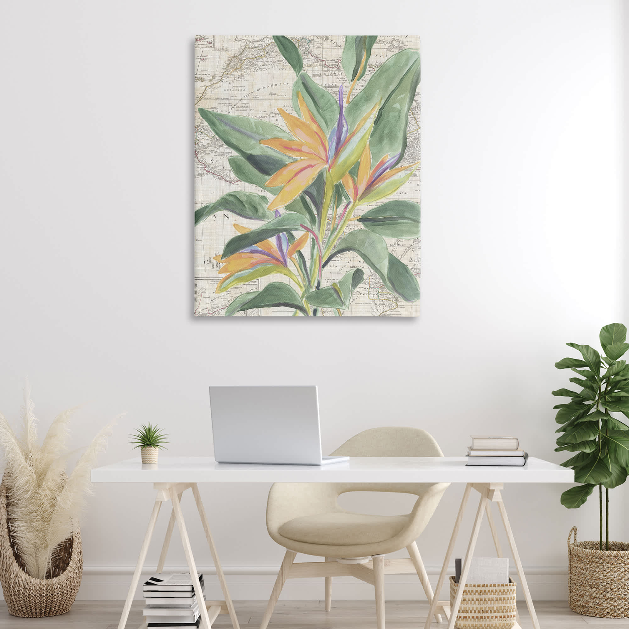 Stupell Industries Tropical Flower over Map Canvas Wall Art By June Erica Vess 36 x 48