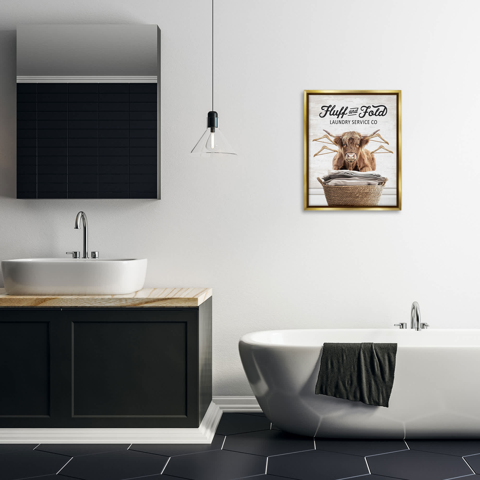 Stupell Industries Vintage Fluff and Fold Cattle Gold Framed Floater Canvas Wall Art By Lettered and Lined 17 x 21