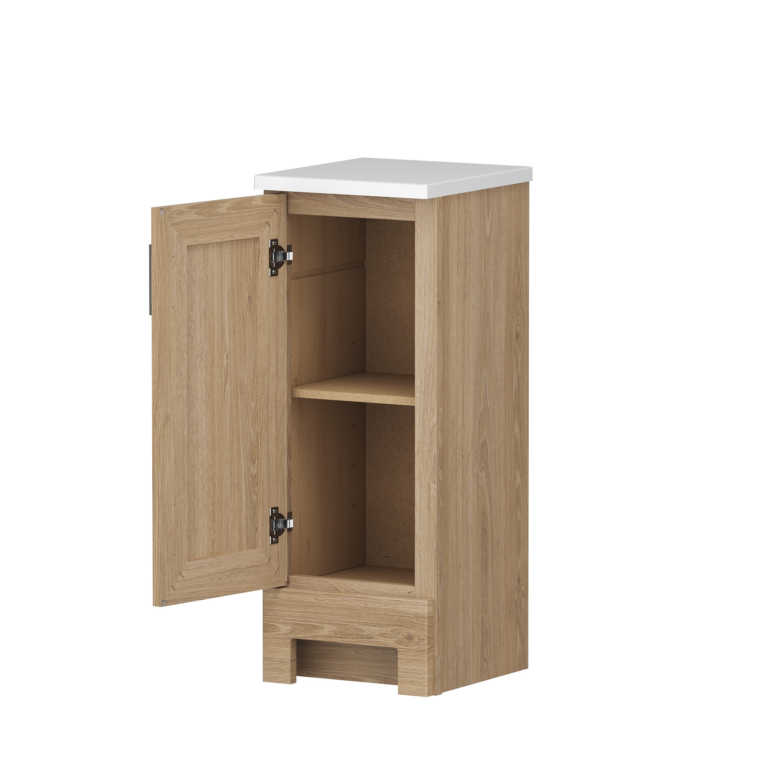 Keep your bathroom essentials neatly organized with the sandstone vanity side cabinet from the Euro collection. Designed to complement a variety of styles, this vanity side cabinet features a classic Shaker-inspired design that pairs effortlessly with both the 18-in and 24-inch Euro sandstone vanities. Thoughtful details like matte black hardware and a furniture-style toe kick add a touch of sophistication, while the adjustable shelf provides customizable storage for your toiletries and linens. Whether maximizing space in a compact bathroom or enhancing a larger setup, the sandstone vanity side cabinet brings both function and style to your home.