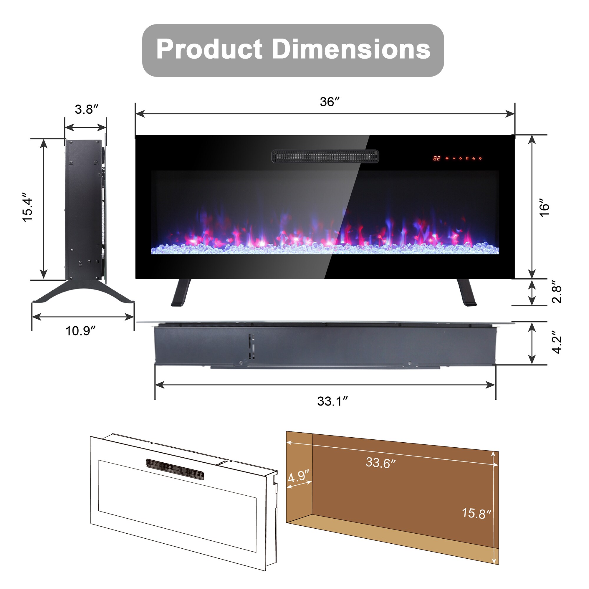Overheating Protection: The electric fireplace shuts down automatically when the temperature is too high for safety.