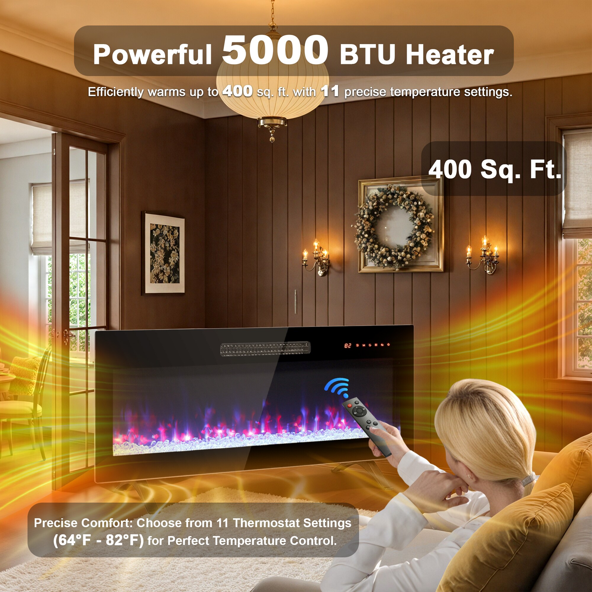 Easy Control: you can control the fireplace with the included remote control or via the touch screen.
