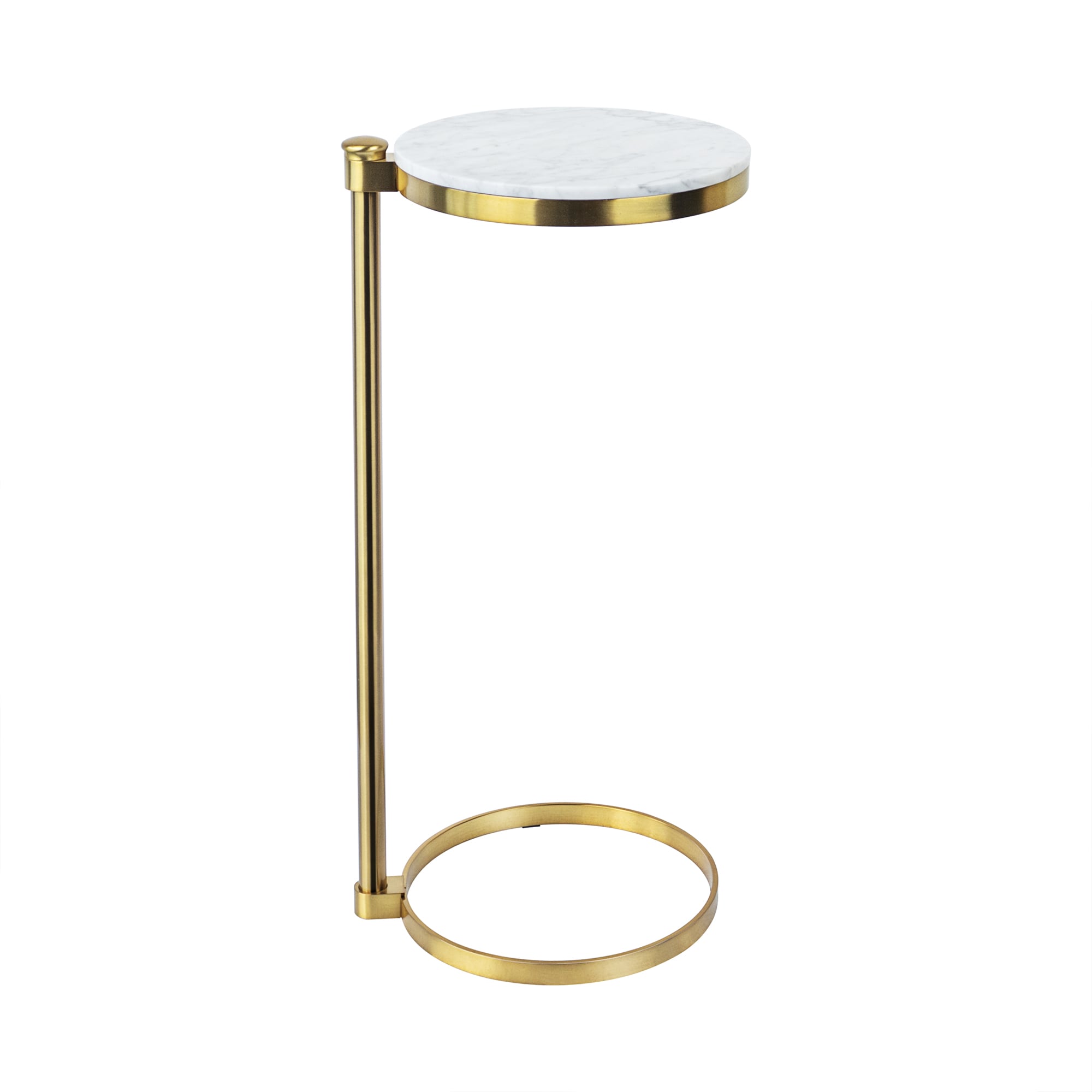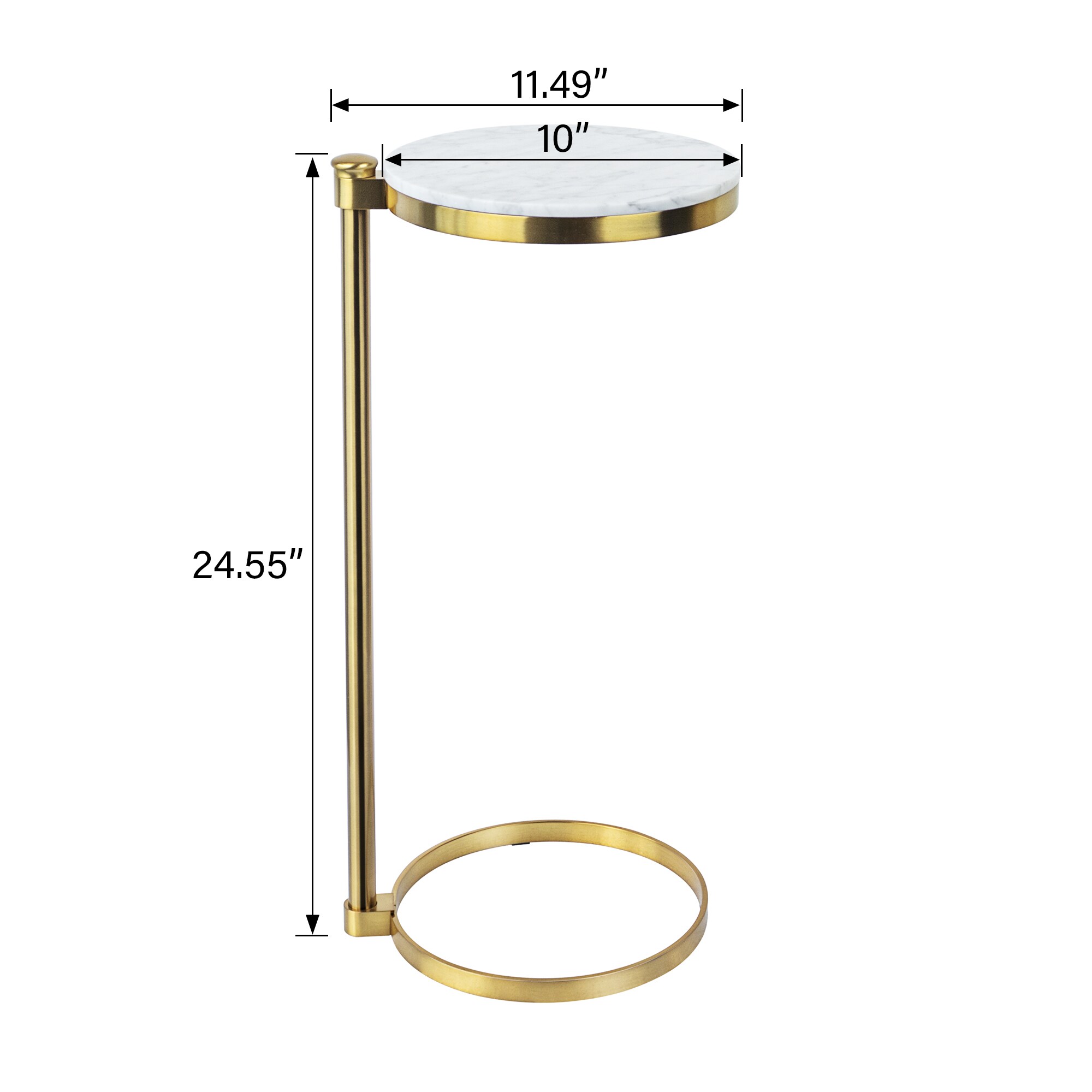 Modern C-Shaped Drink Table:Perfect as a martini table for your sofa or reading nook while saving space, Expertly crafted from Cararra marble imported from Italy and stainless steel metal stand with extremely durable and luxurious gold electro-plated metal finishing technique which is only seen in high end retailers;