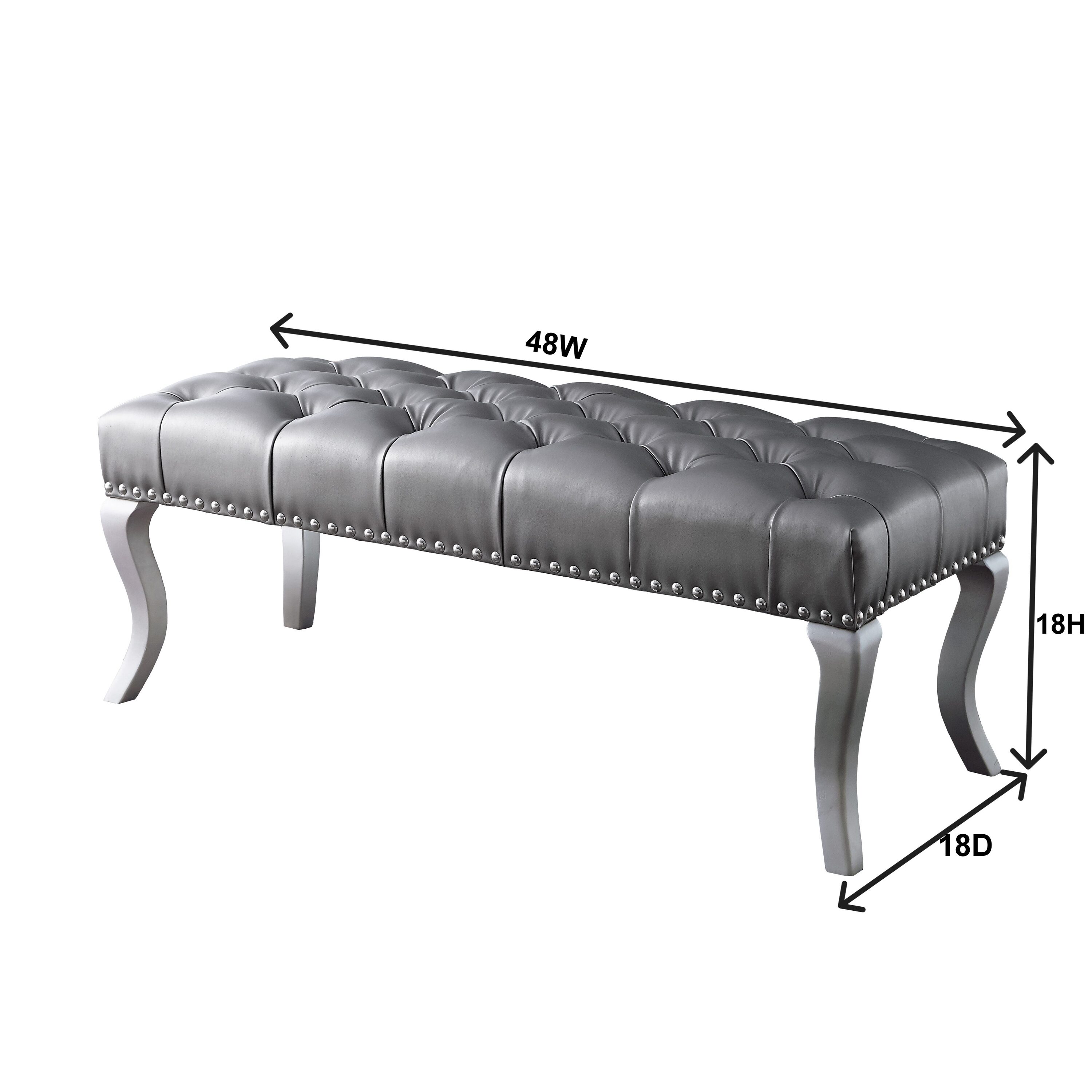 Tatayosi Decor Gray Tufted Fabric Upholstered Bench Nailhead Trim
