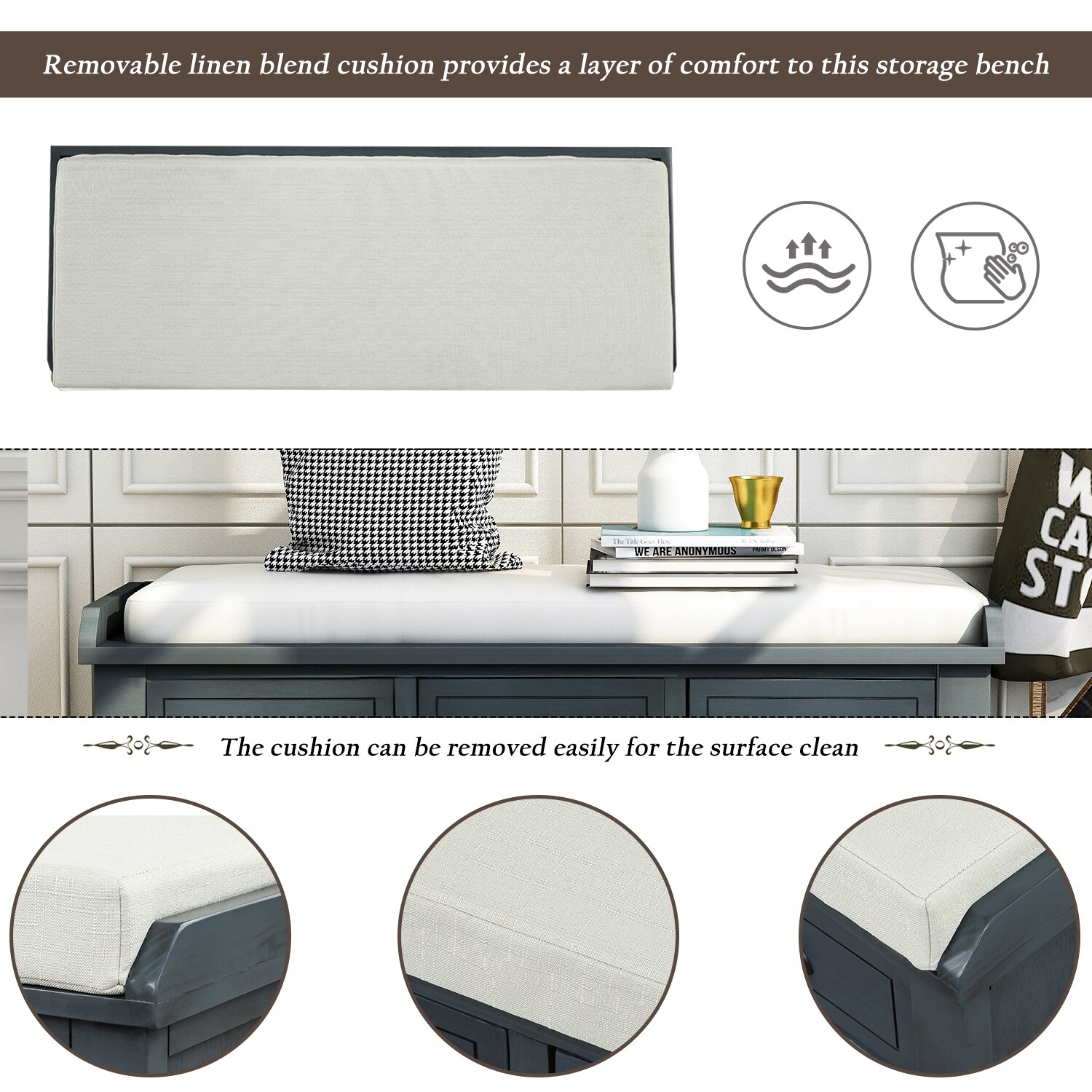 Tatayosi Rustic Storage Bench with 3 Drawers and 3 Rattan Baskets Shoe Bench for Living Room Entryway (Antique Navy)