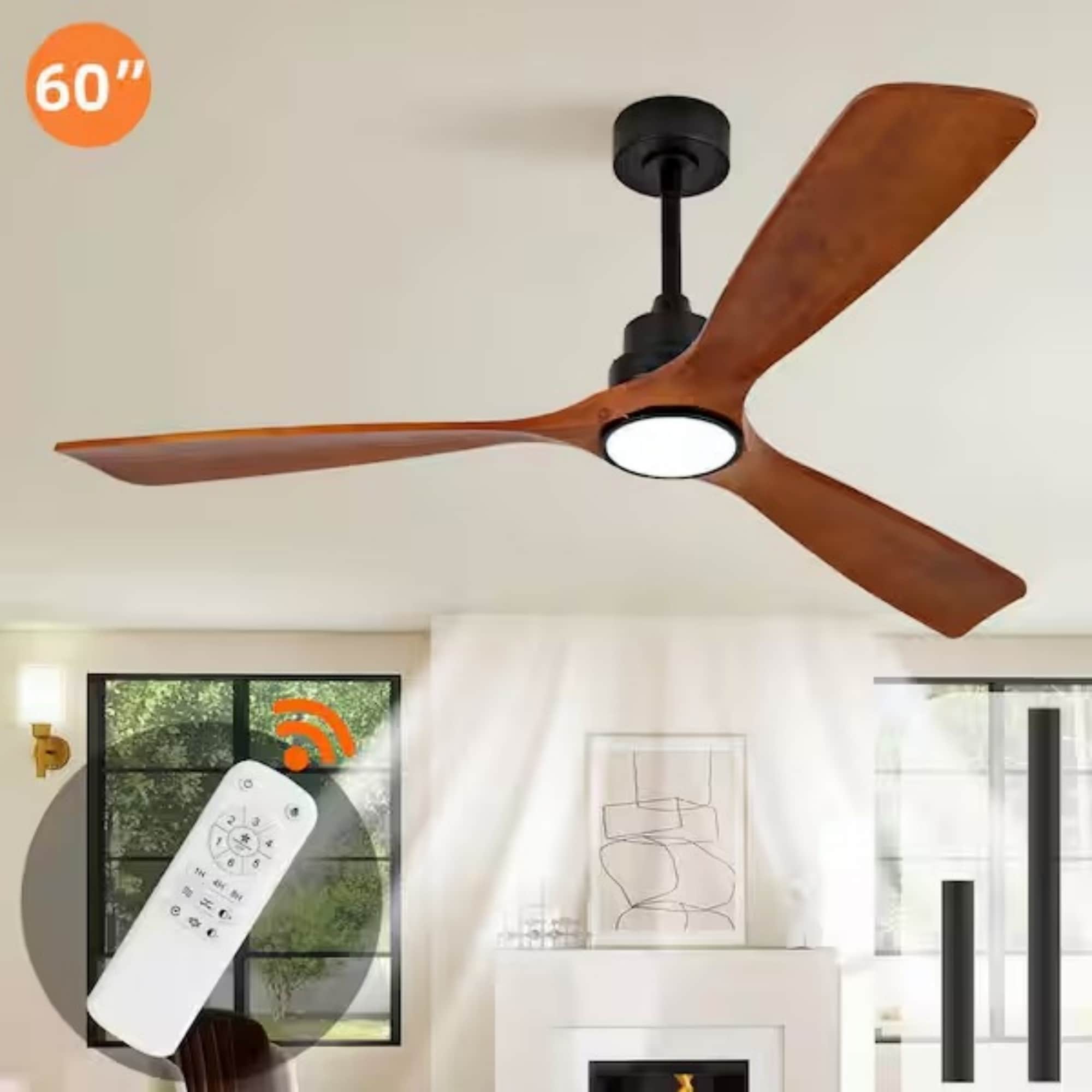 This 52 in. modern ceiling fan combines sleek design with high-efficiency performance. Featuring a reversible DC motor, whisper-quiet operation, 18W dimmable 3-color LED light, and multiple smart control options, it delivers year-round comfort for medium to large rooms. Adjustable downrods and memory-function lighting make it both versatile and convenient.