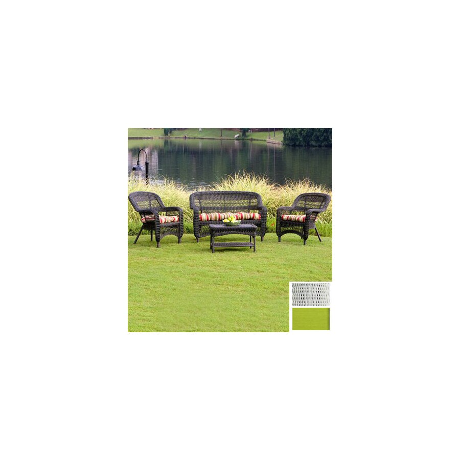 Includes loveseat with cushion, two chairs with cushions, coffee table