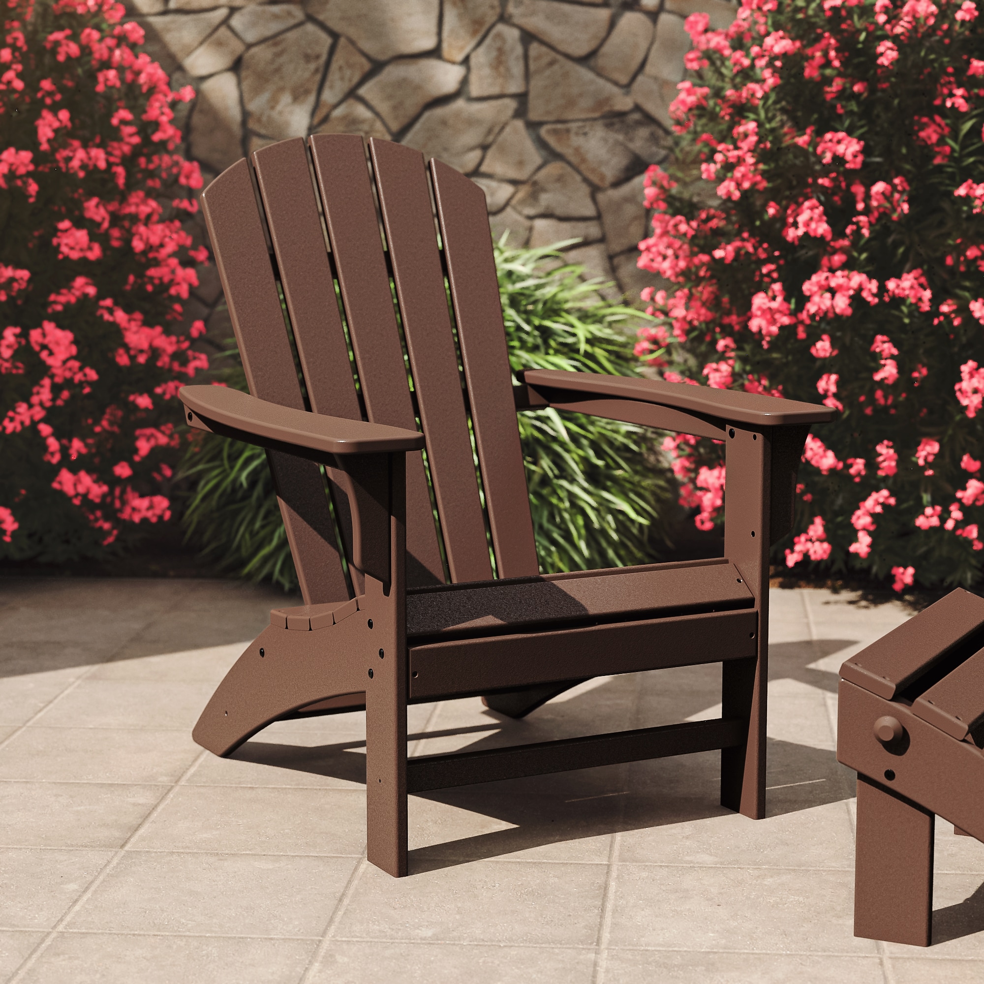 This Adirondack chair enhances comfort with its contoured seat and reclined back