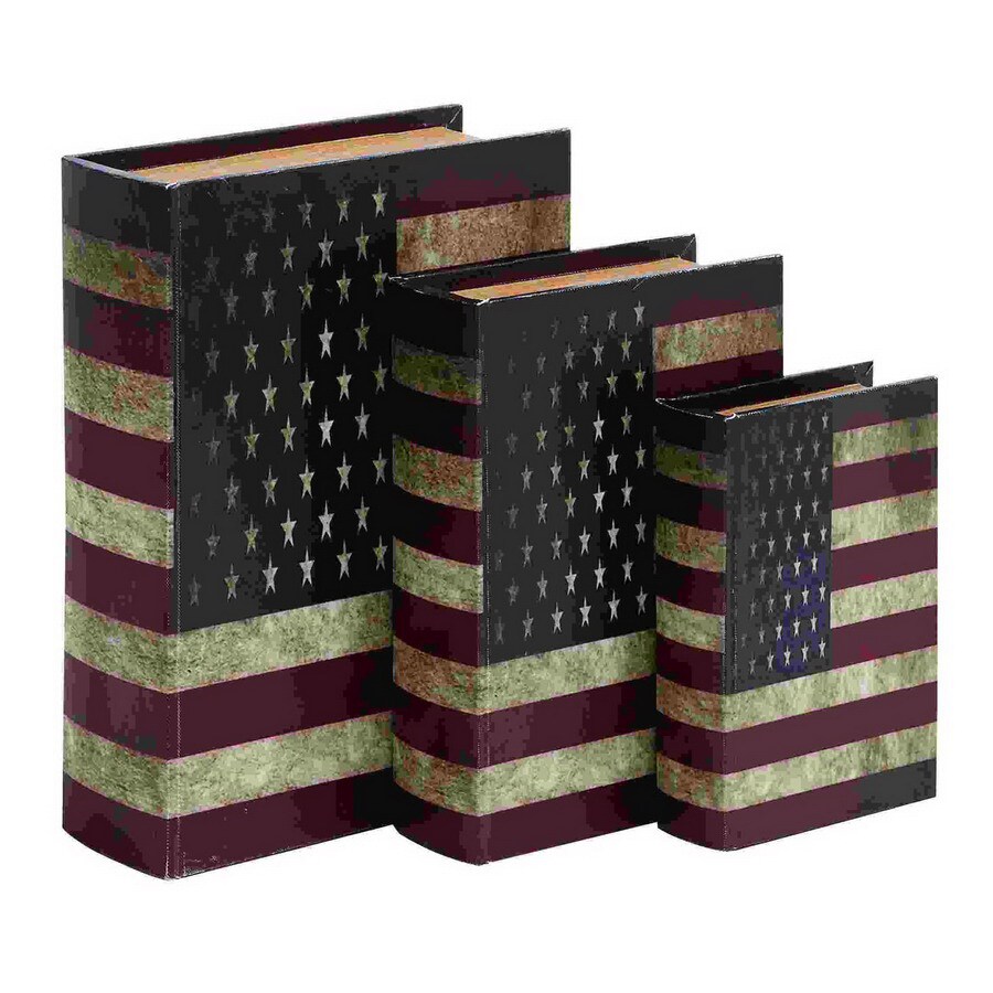 UMA Enterprises Set of 3 Rectangular American Flag Book Boxes