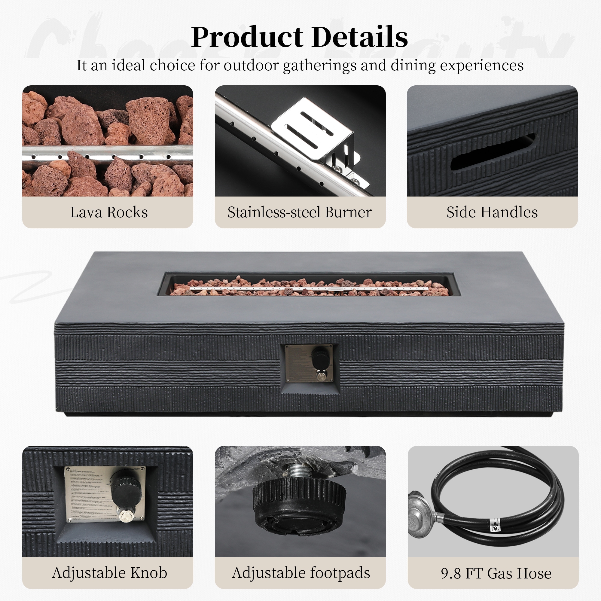 The 56-inch fire pit table has a BTU of 50000;The fire pit tables come with CSA safety certification, ensuring a more secure and worry-free experience.