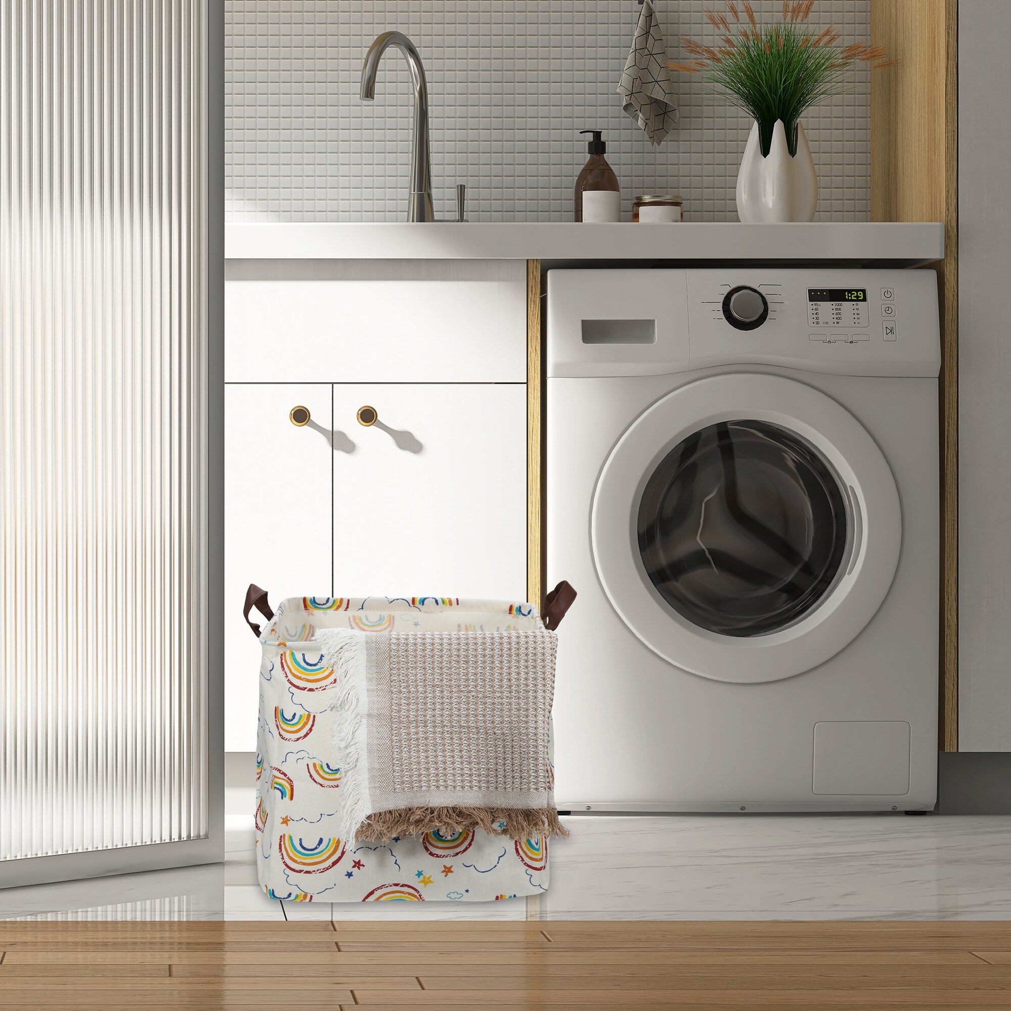 Unique Bargains Foldable Square Laundry Basket for Laundry Room 12.60 Inch x12.60 Inch x12.60 Inch 30L Assorted Color 1pc Rainbow