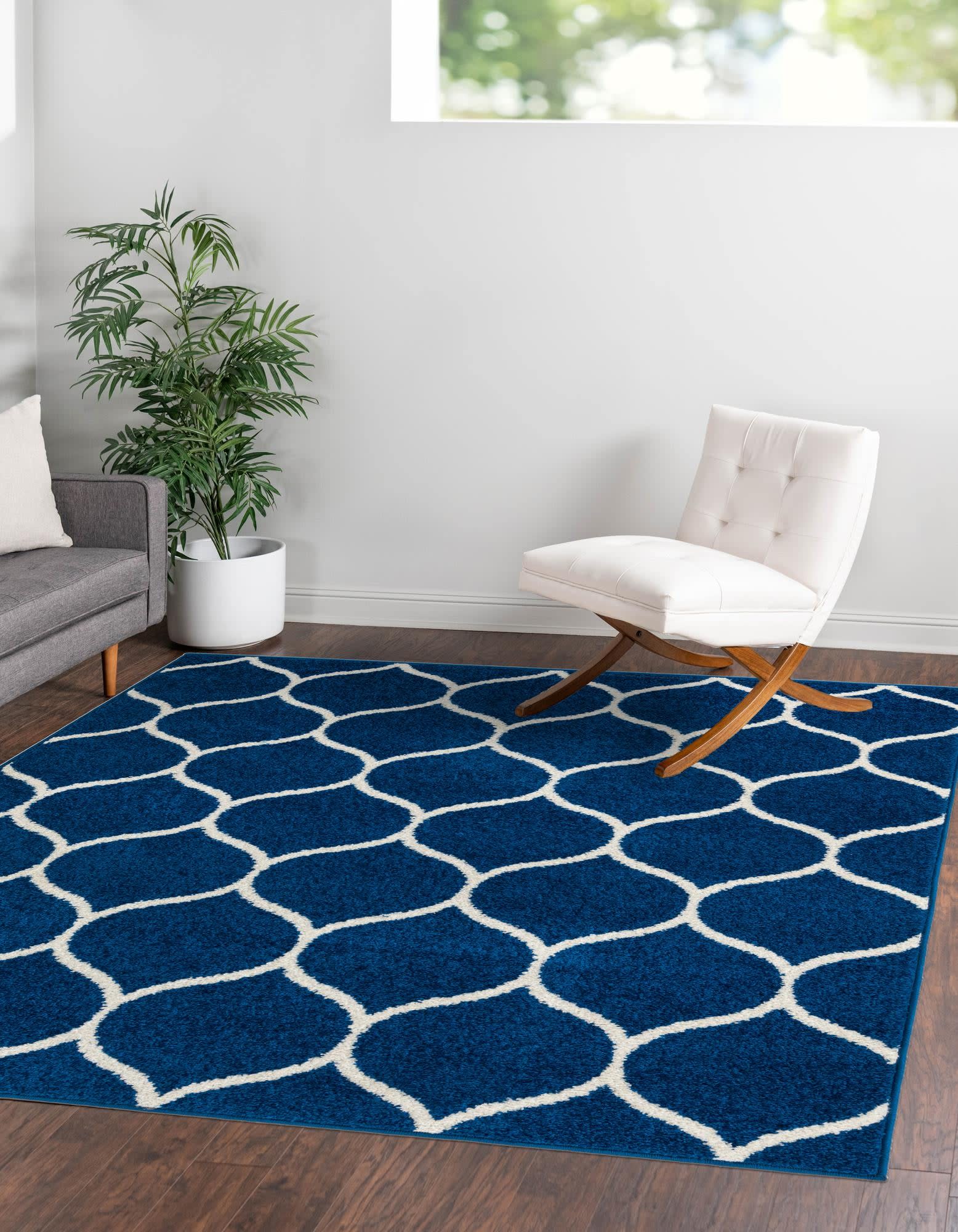 Unique Loom Trellis Frieze 4 x 4 (ft) Loomed Polypropylene Navy Blue Square Indoor Trellis Area rug