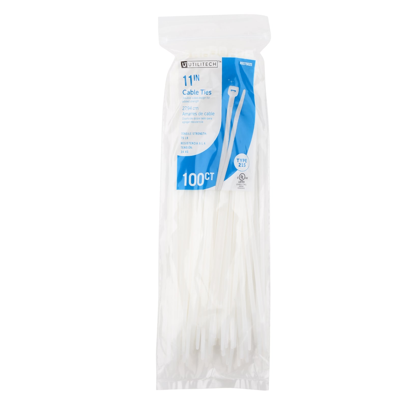 Utilitech 11-in 75-lb Tensile Strength Nylon Standard zip ties Off-white 100 -Pack