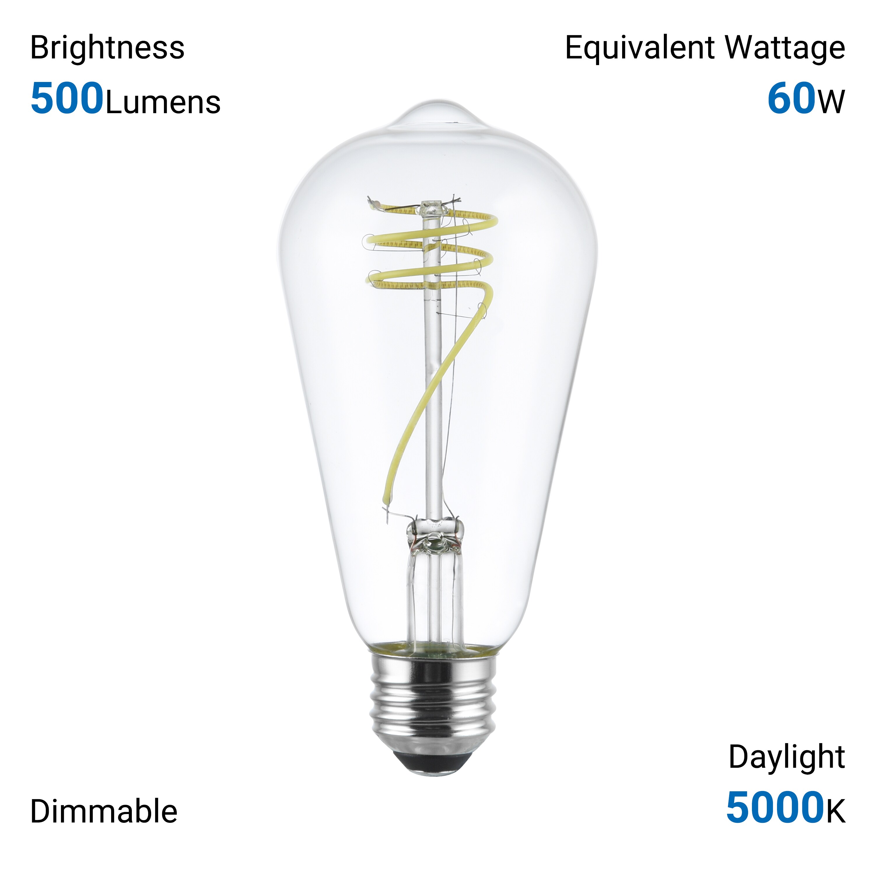 Thin filament bulbs use thinner LED strips that can be coiled more tightly than regular ones. This gives them a look similar to traditional incandescent tungsten filaments, making them more decorative and eye-catching. The Utilitech ST19 LED bulbs have a vintage teardrop shape, measuring 2.5 by 5-6 inches. They are more efficient than traditional bulbs and fit well in fixtures like pendant lights and chandeliers, with an E26 standard medium base.
