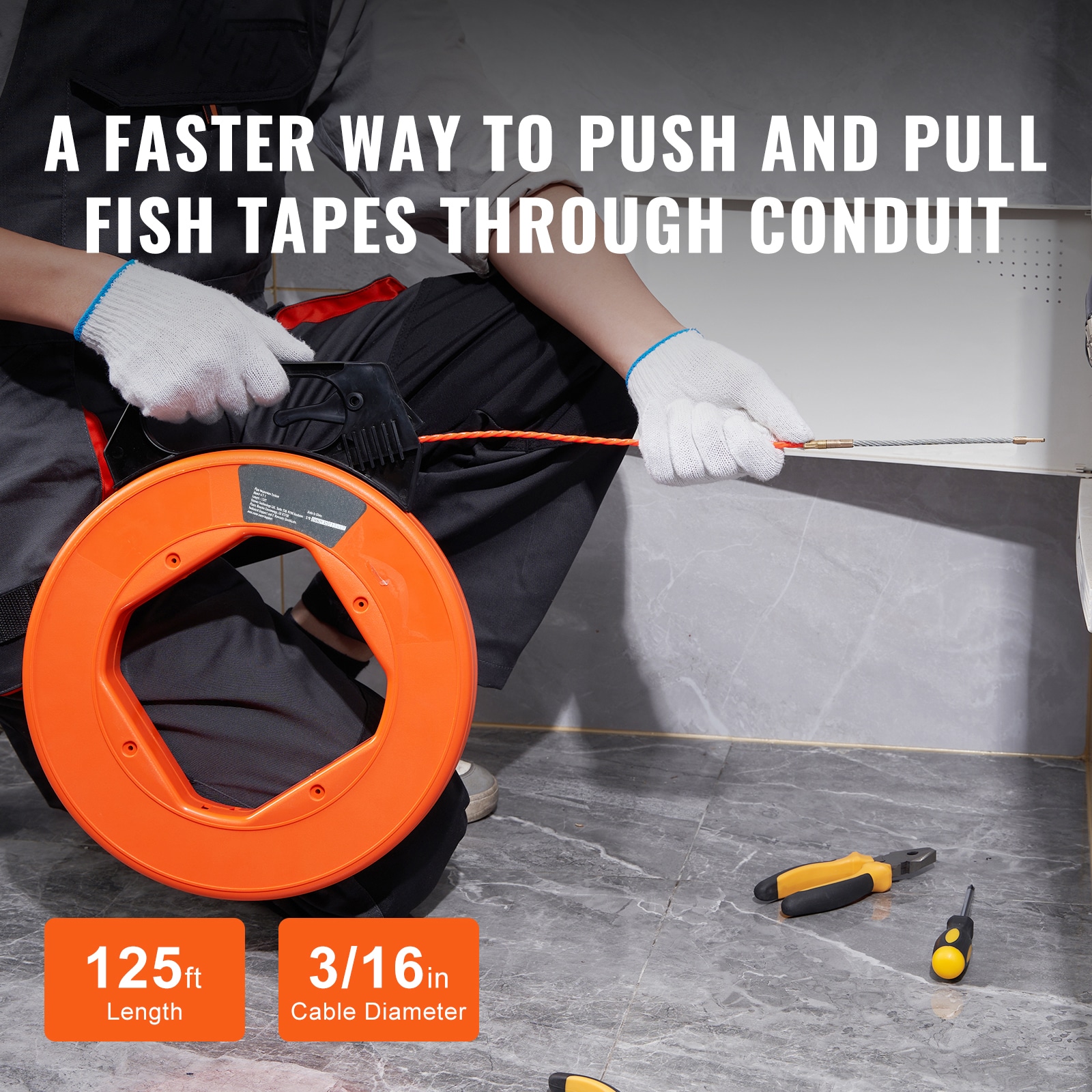 VEVOR Fish Tape 125-foot 3/16-inch PET Wire Puller with Optimized Housing and Handle Easy-to-Use Cable Puller Tool Flexible Wire Fishing Tools for Walls and Electrical Conduit Non-Conductive
