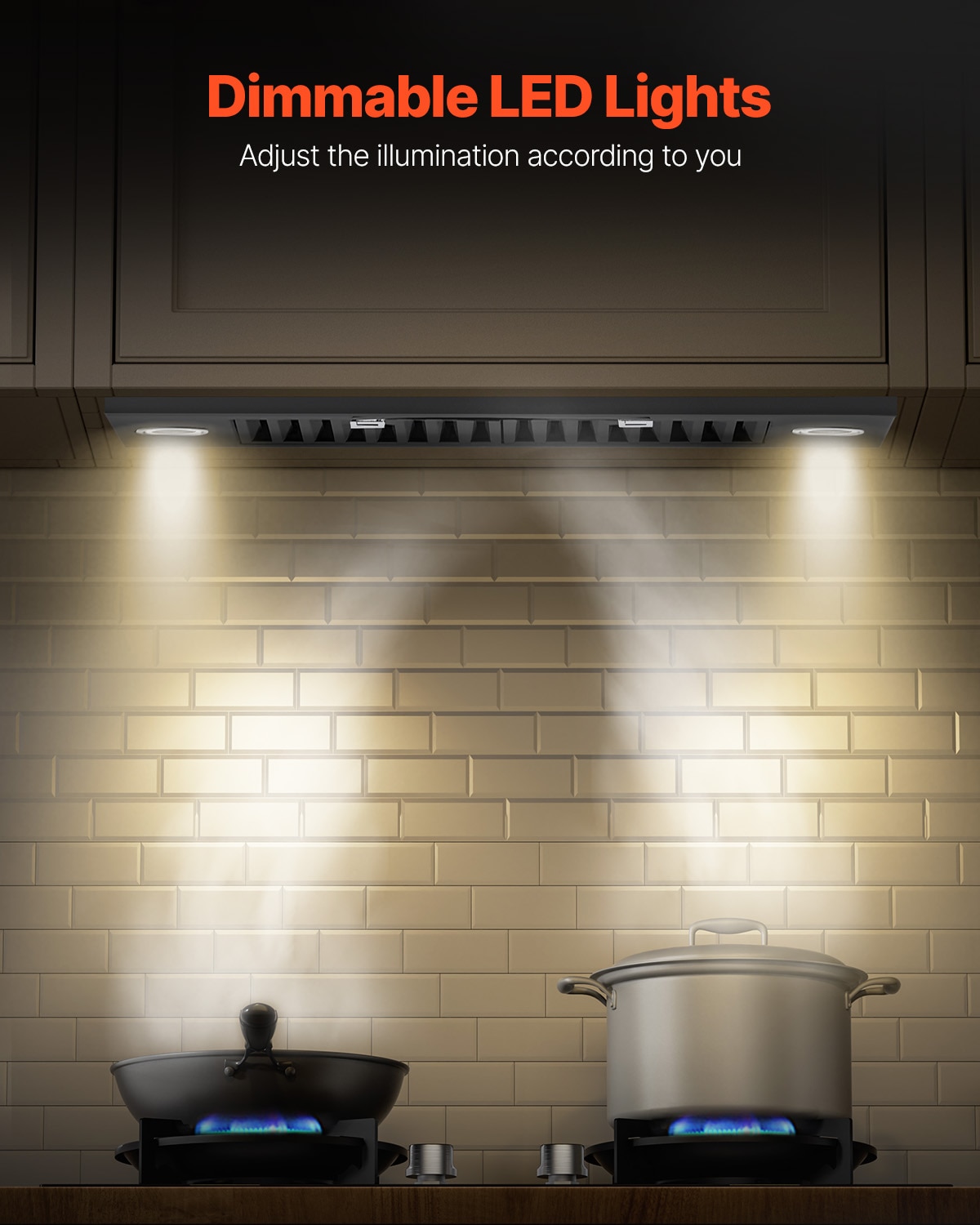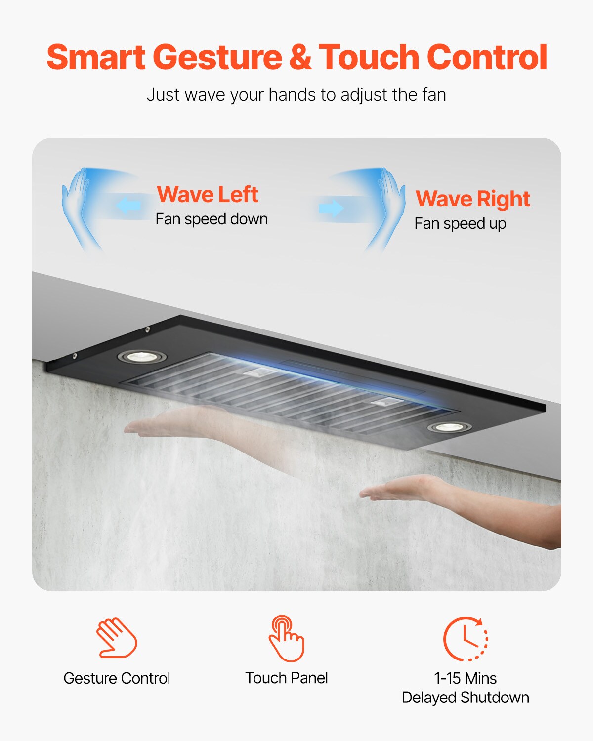 VEVOR Range Hood Insert 30 Inch Built-in Kitchen Vent Hood 800CFM Steel Stove Hood with Gesture and Touch Control LED Light Baffle Filters 4-Speed Exhaust Fan Ducted/Ductless Convertible