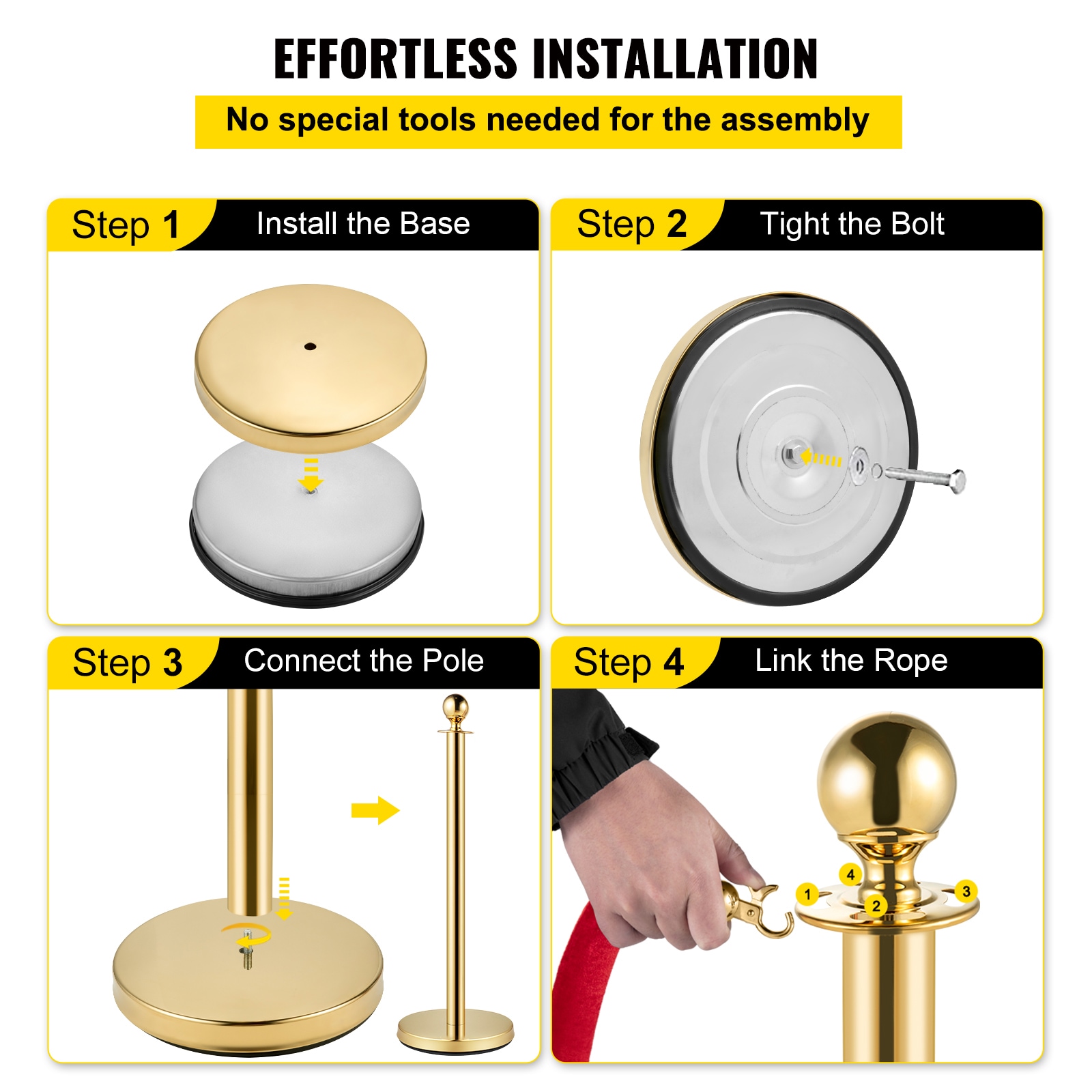 VEVOR Velvet Ropes and Posts 5 ft/1.5 m Red Rope Stainless Steel Gold Stanchion with Ball Top Red Crowd Control Barrier Used for Theaters Party Wedding Exhibition Ticket Offices 4 packSets