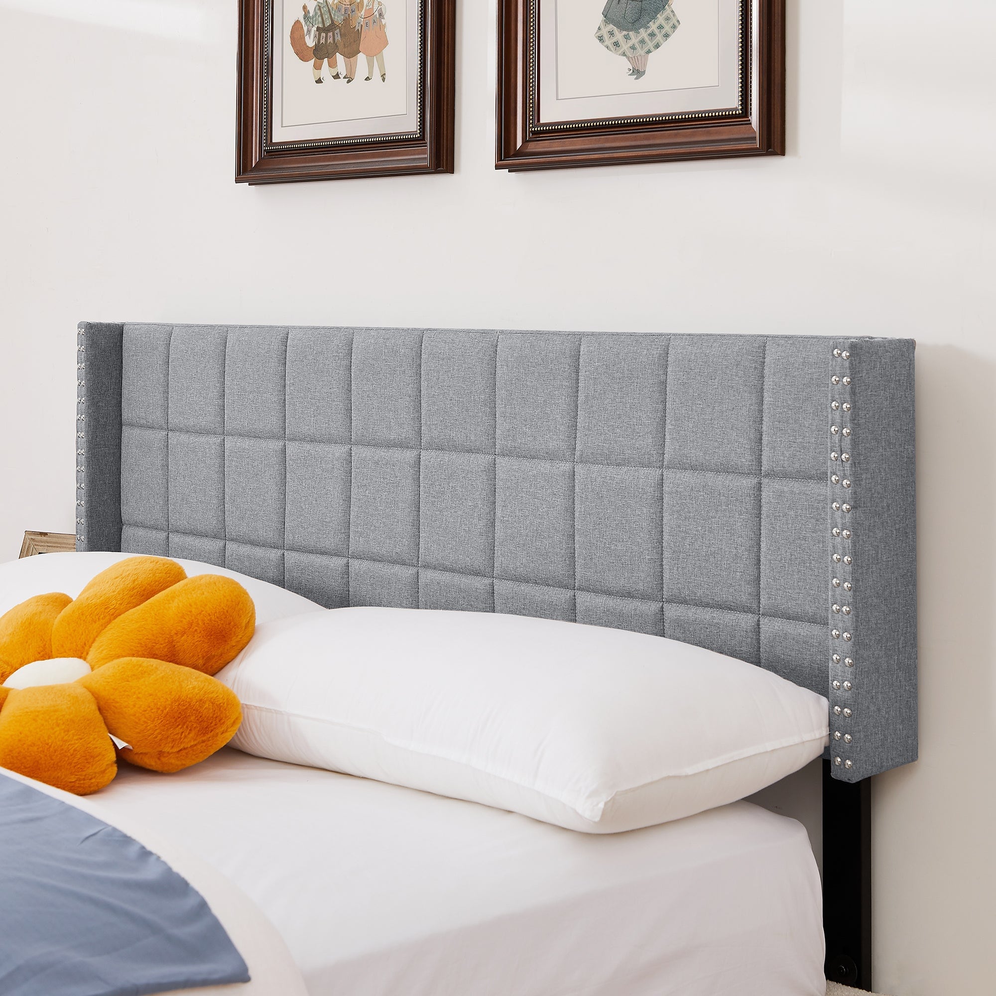 Vecelo Adjustable Height Upholstered Wingback Headboard Modern Channel Design