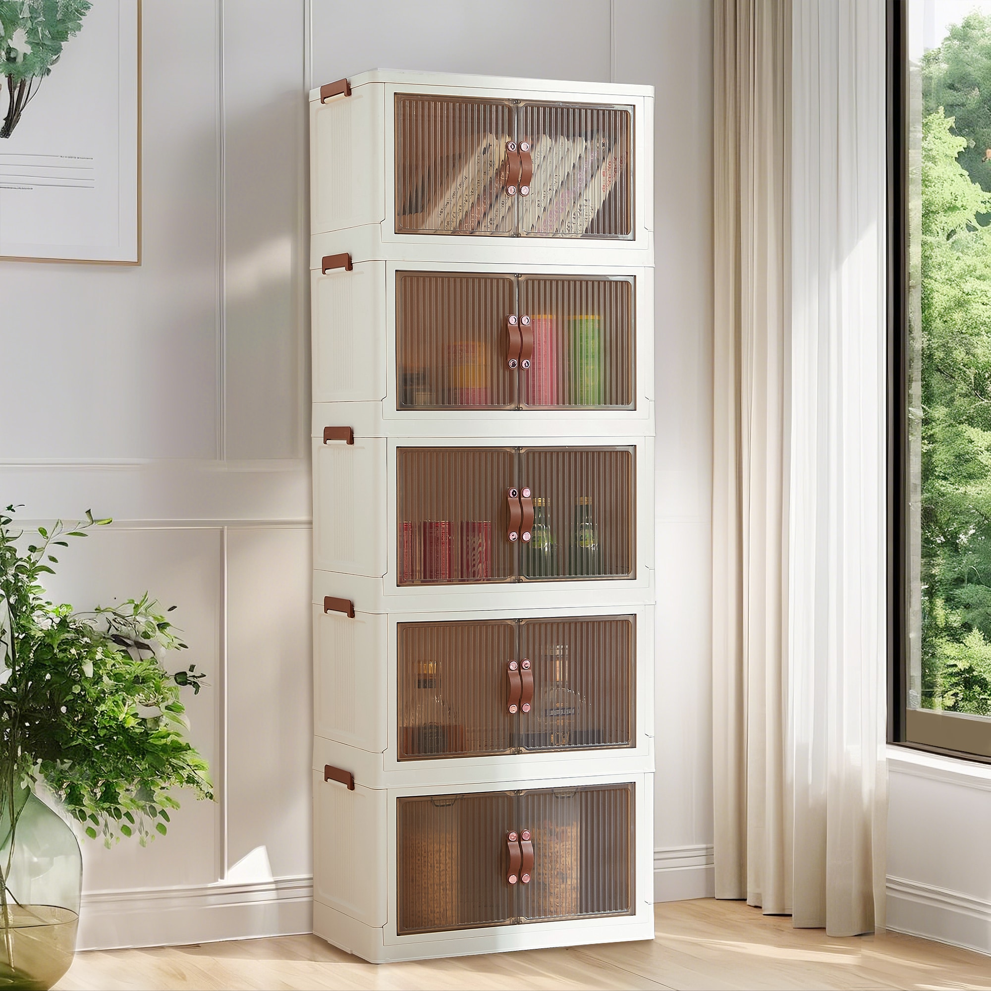 Double doors: Our stackable storage bins open at the front, allowing two ways to access items - through the top lid or the front door; The transparent double-hinged front door opens easily and allows for quick identification.