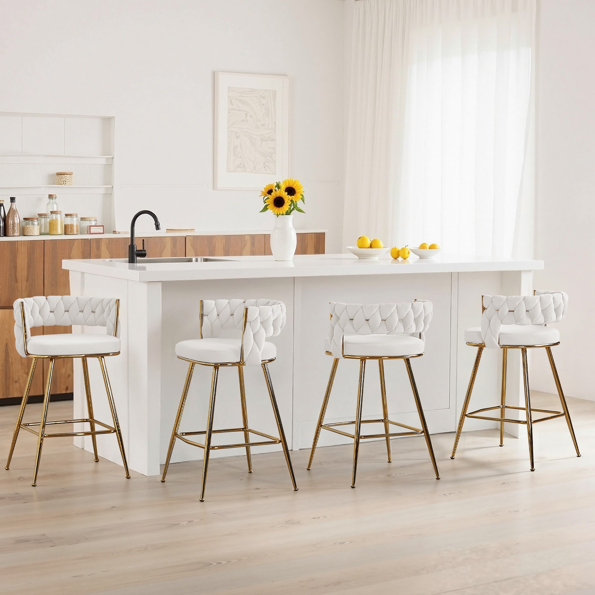 Vecelo Set of 2 Counter Height Bar Stools Velvet Seat with Metal Frame Durable and Comfortable Kitchen Island Chairs