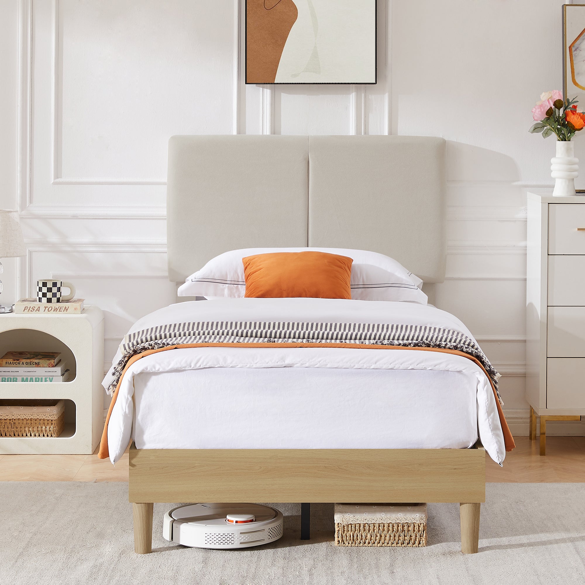 Vecelo Twin Platform Bed Frame Upholstered Beds with Height Adjustable Velvet Headboard