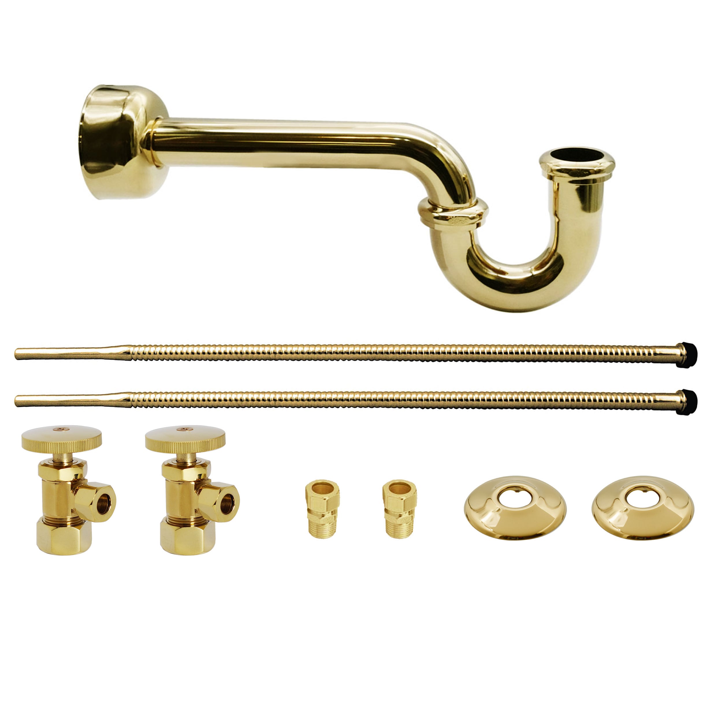Pedestal Lavatory Kit with Angle Stops, Corrugated Risers, and P-Trap with Flange - Round Handles