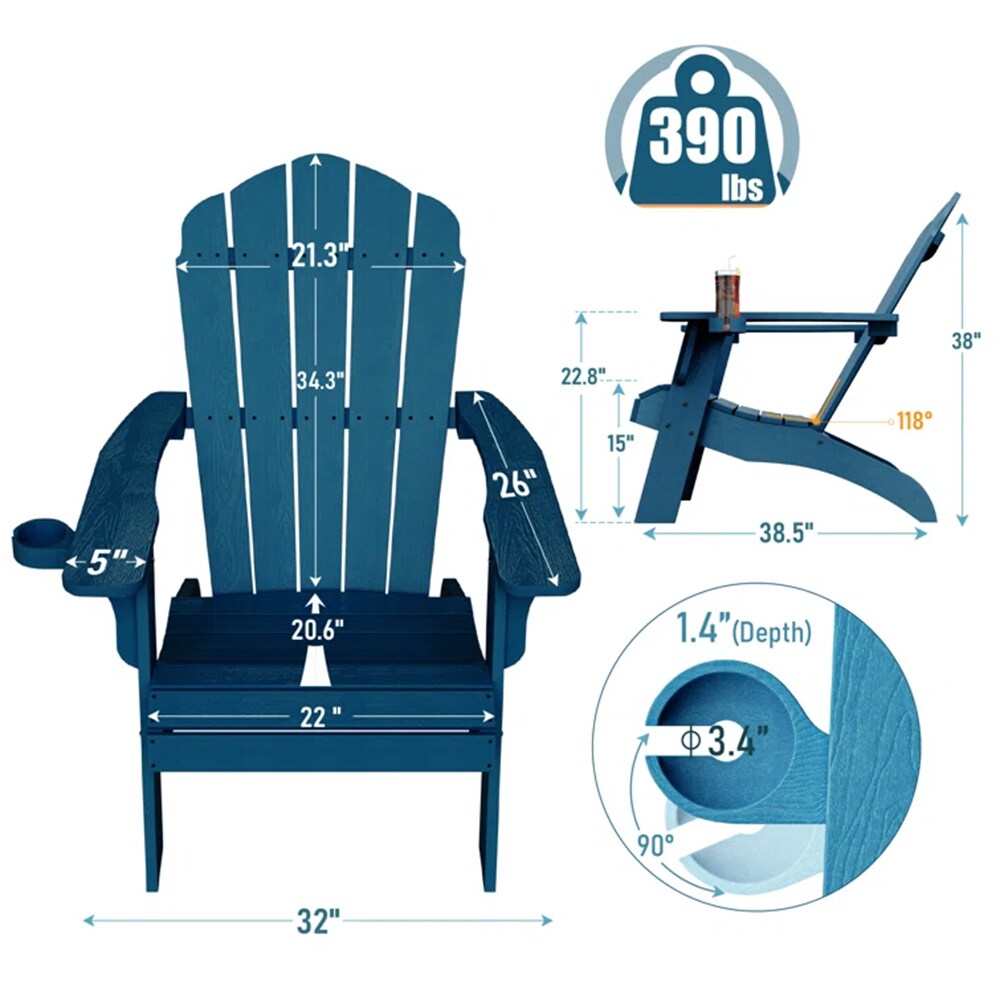 WINSOON Navy Oversize Adirondack Chair Navy Plastic Frame Stationary Adirondack Chair with Blue Slat Seat