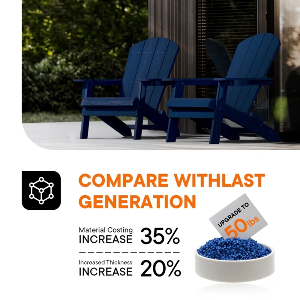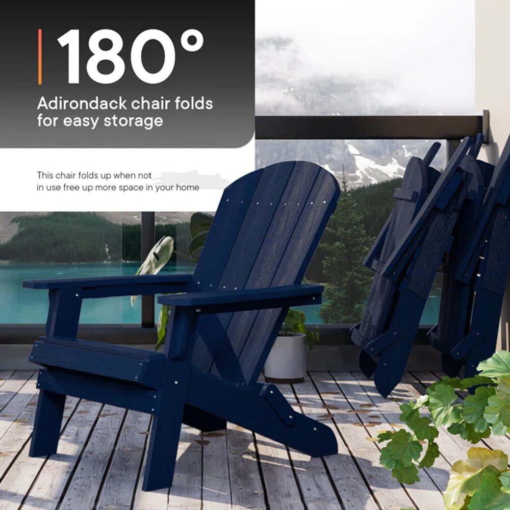WINSOON Dark Blue Folding Adirondack Chair with Cup Holder Dark Blue Plastic Frame Stationary Adirondack Chair with Blue Slat Seat