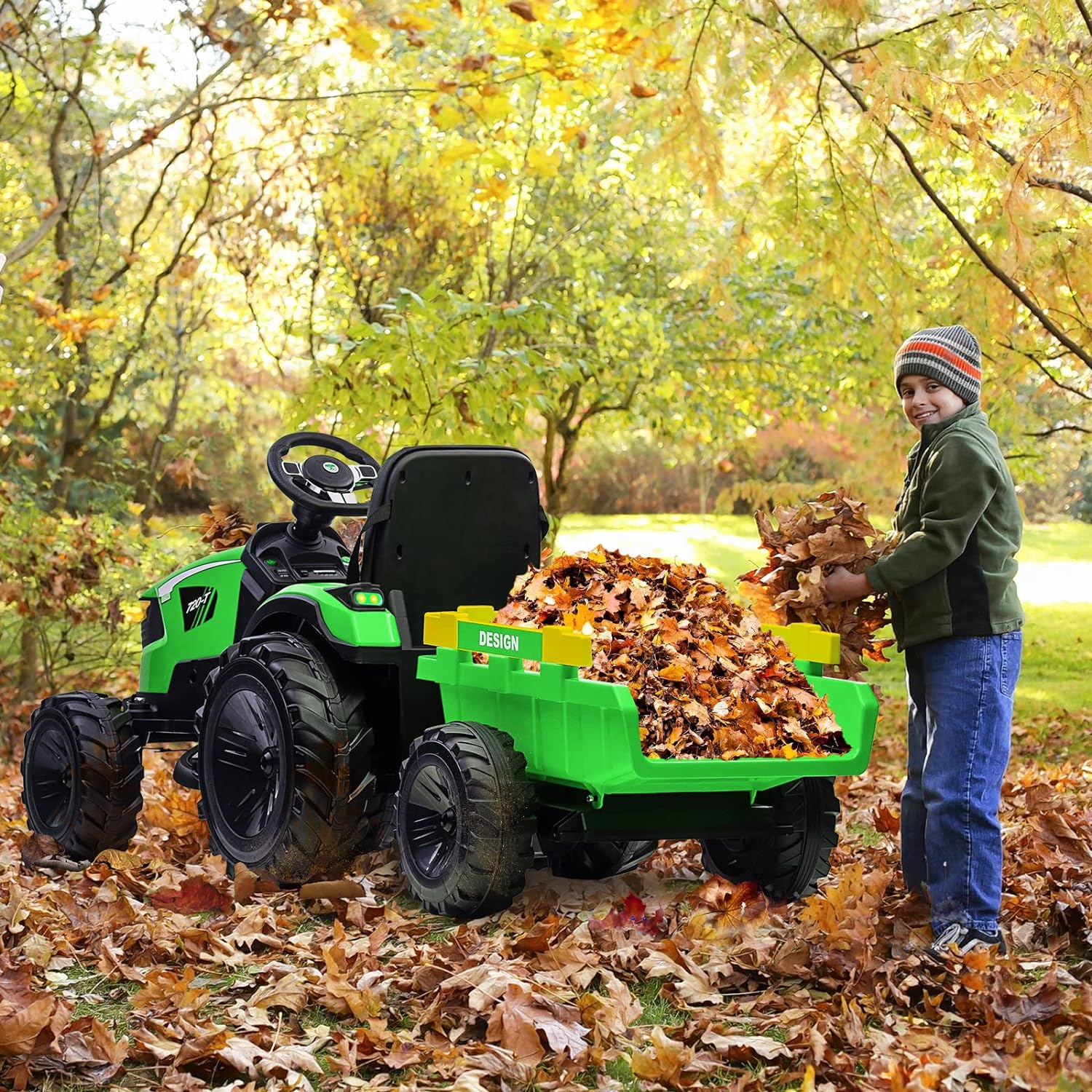 WhizMax 24V 3-in-1 Kids Ride-On Tractor-Excavator-Bulldozer-With Trailer-Remote Control-EVA Tires-LED Lights-Music-USB-Green