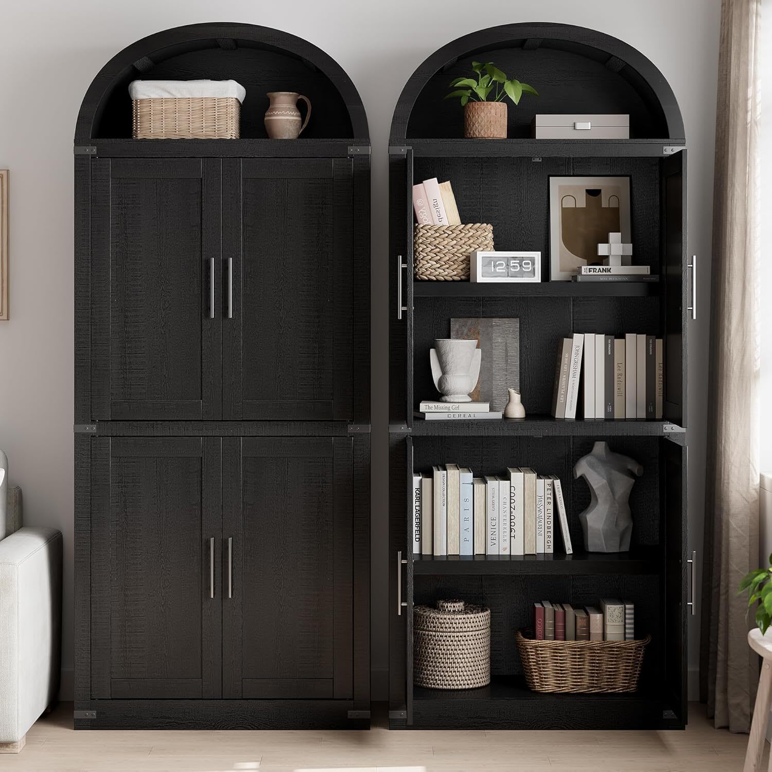 WhizMax 5 Tier Arched Bookcase 71.6 in Tall Kitchen Pantry Farmhouse Kitchen Storage Cabinet Large Bookshelf with Doors and Cabinets for Dining Room Black