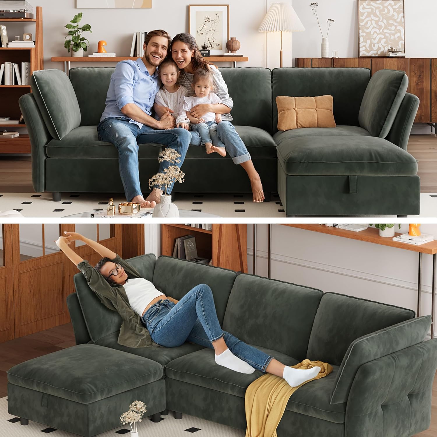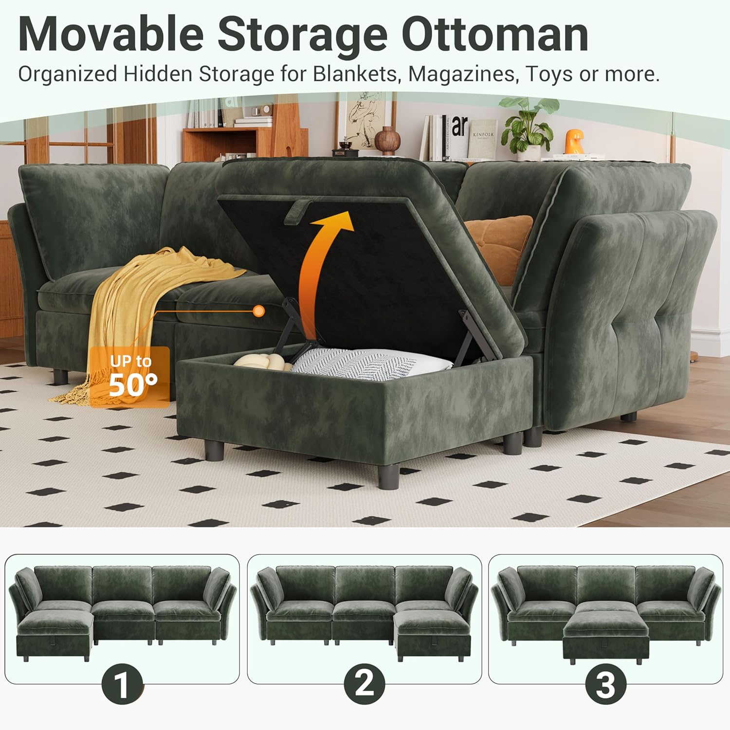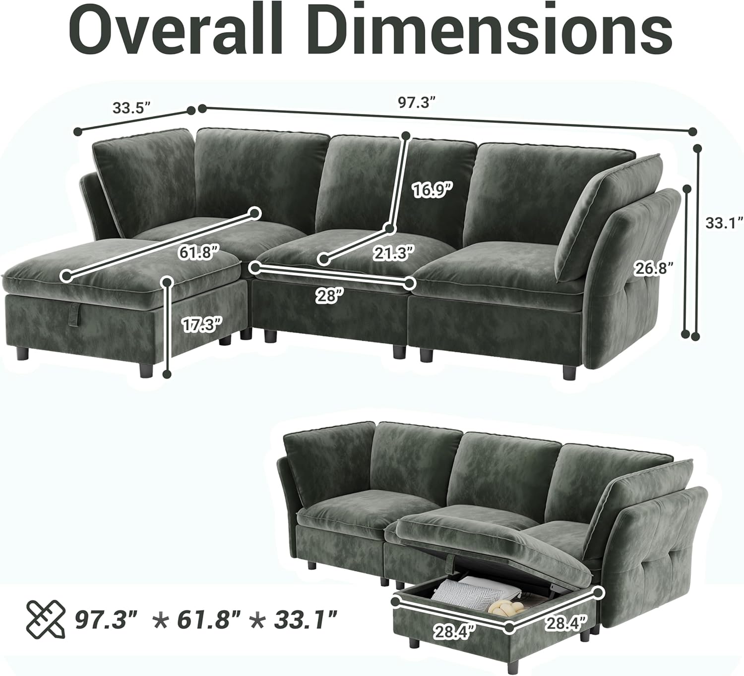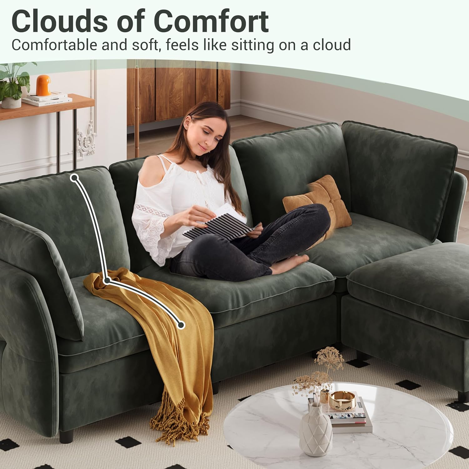 WhizMax 97-Inch L-Shaped Sectional Sofa-Velvet Fabric-3 Seater With Ottoman-Green