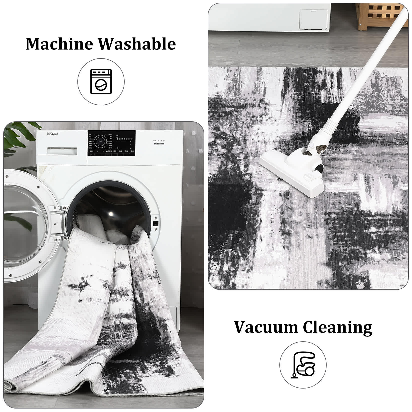 WhizMax Modern Abstract Area Rugs Machine Washable Stain Resistant Floor Carpet with Non-Slip Backing Non-Shedding Soft Low Pile Rug for Dining Room Living Room Bedroom