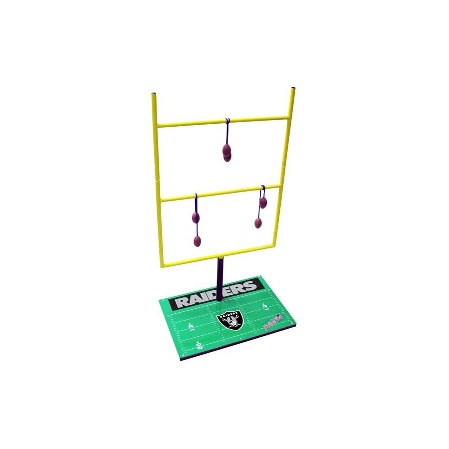 Includes instructions, 6-football bolos (2 sets of 3), 2 metal goal posts and a nylon carry bag