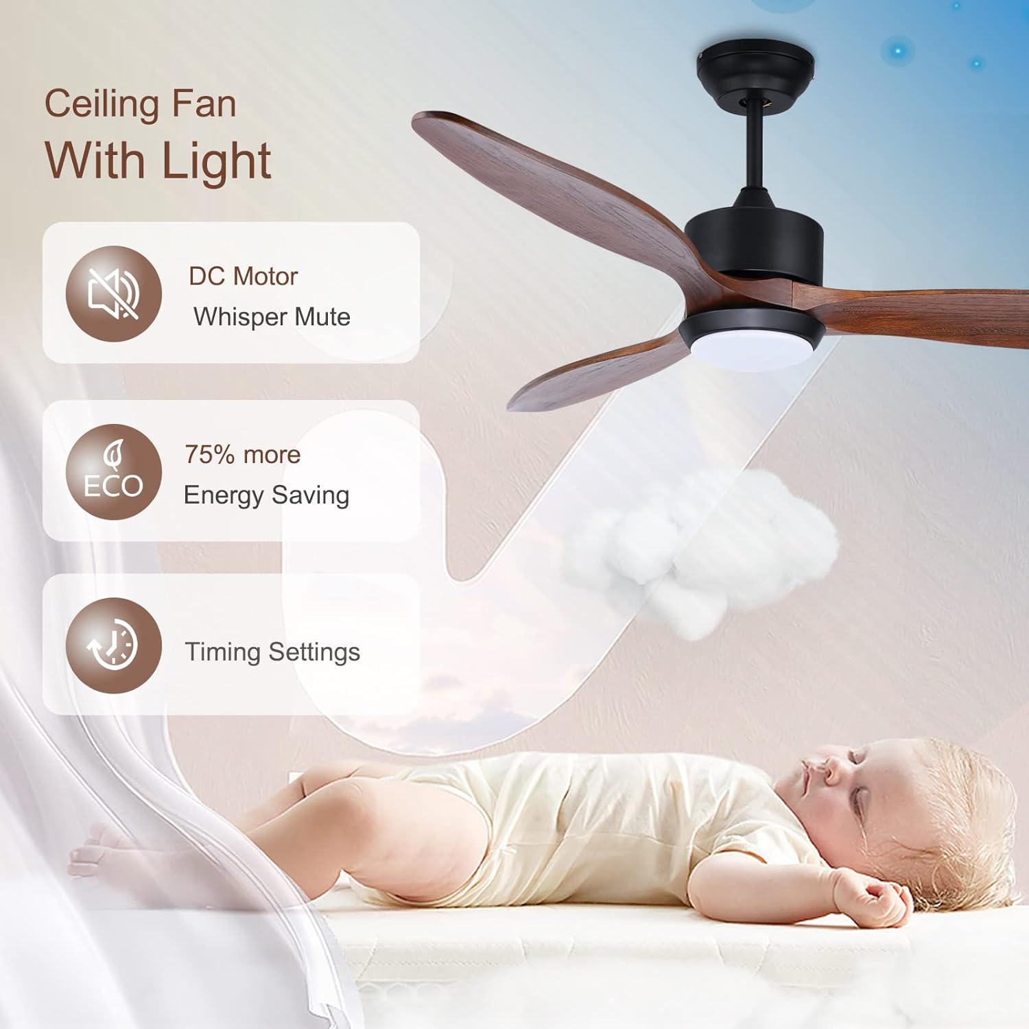 3 Solid Wood Blades: It can grace your space well and make your room more beautiful; Designed for medium to large rooms such as bedrooms, living rooms, dining rooms, patios or common areas.