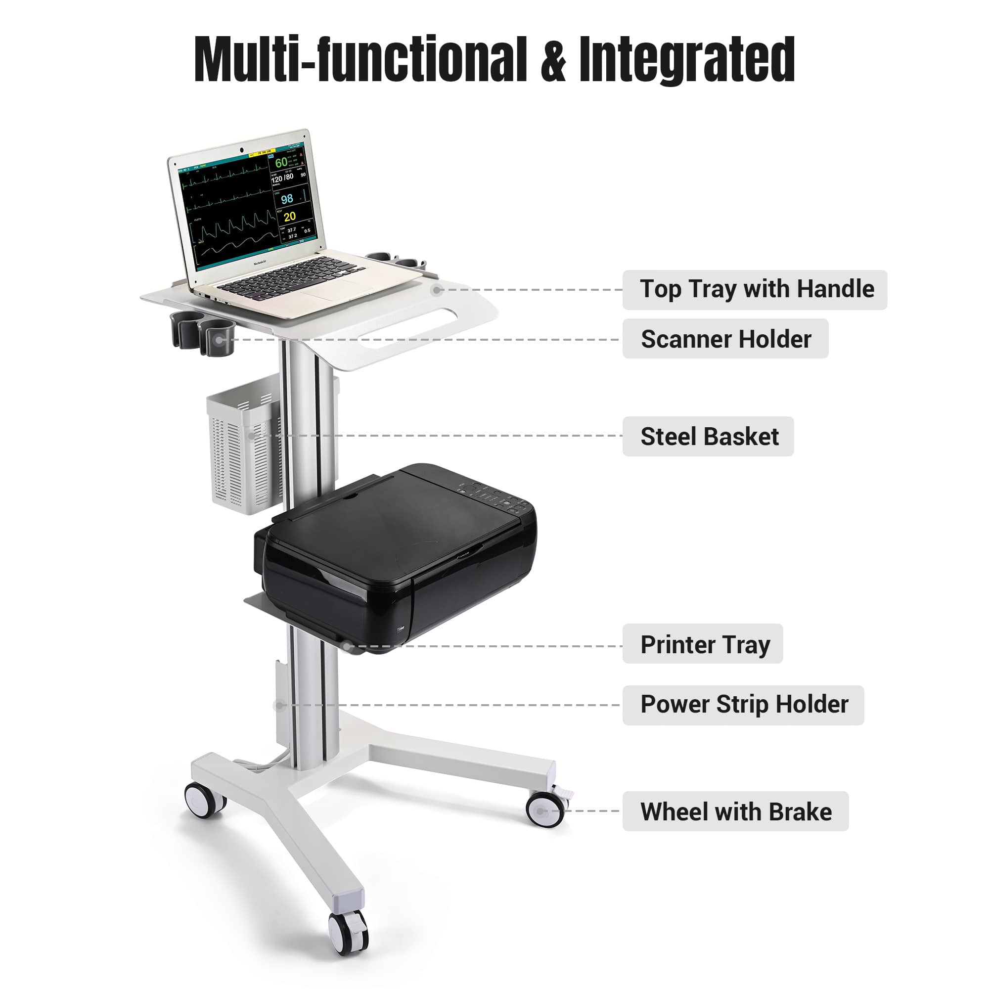 Yescom 2 Tiers Medical Mobile Laptop Cart Medical Rolling Trolley Lab Dental Spa Salon White