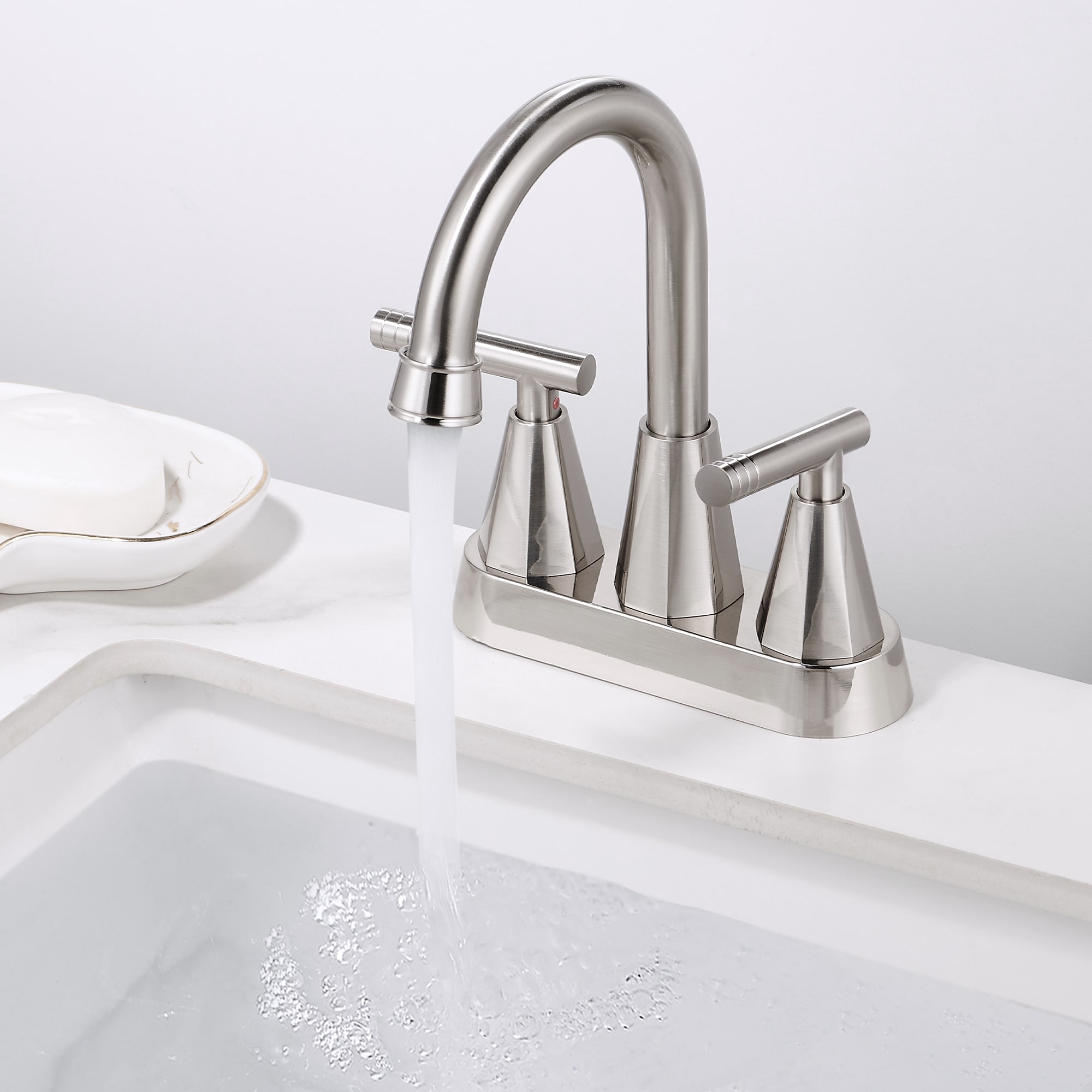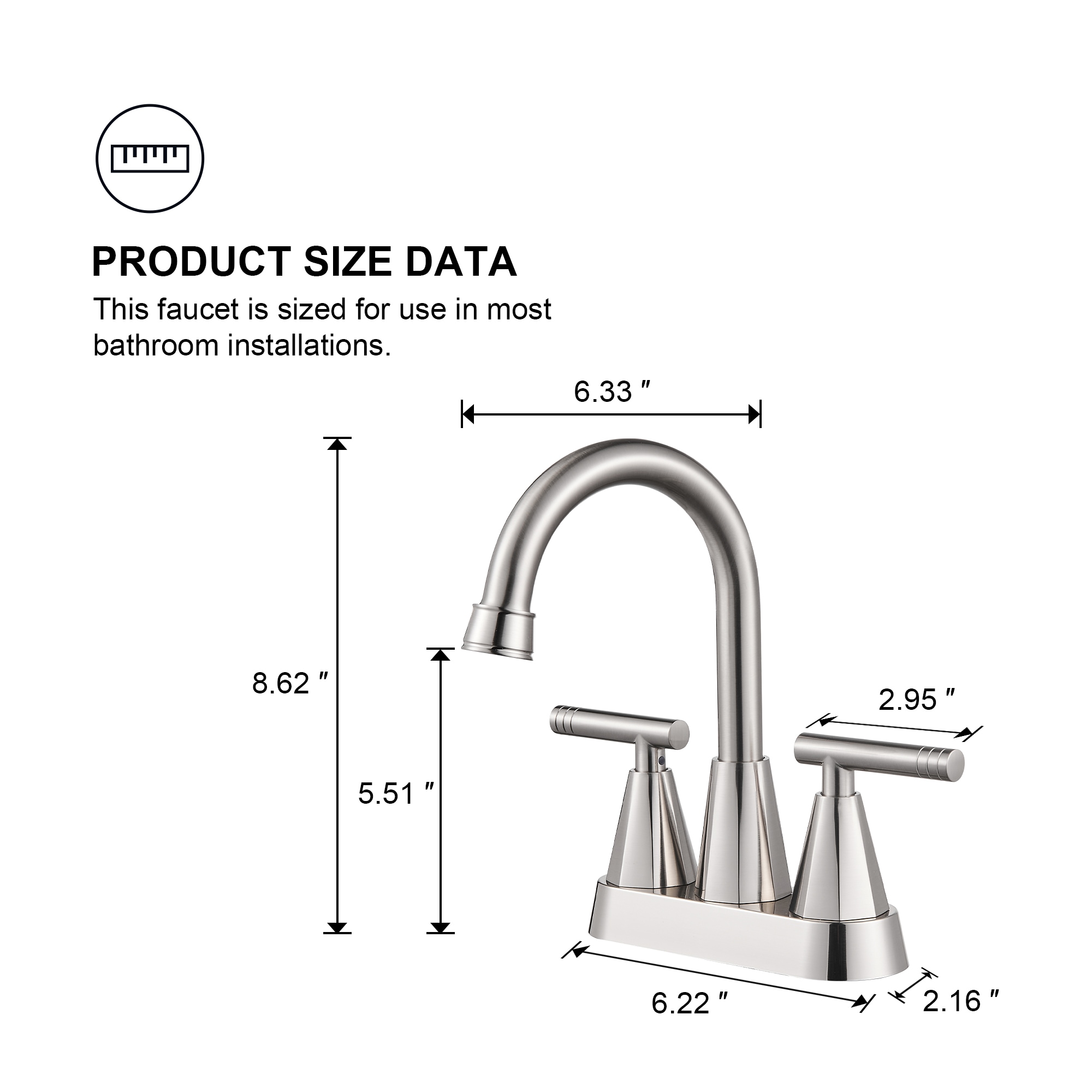 Zalerock Nickel 2-hole 2-handle Low-arc Residential Handle Bathroom Sink Faucet with Drain with Deck Plate