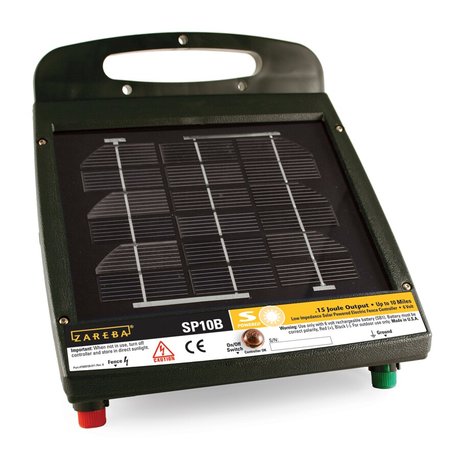 Solar-powered electric fence controller charges up to 10 miles of weed free fence wire, low impedance
