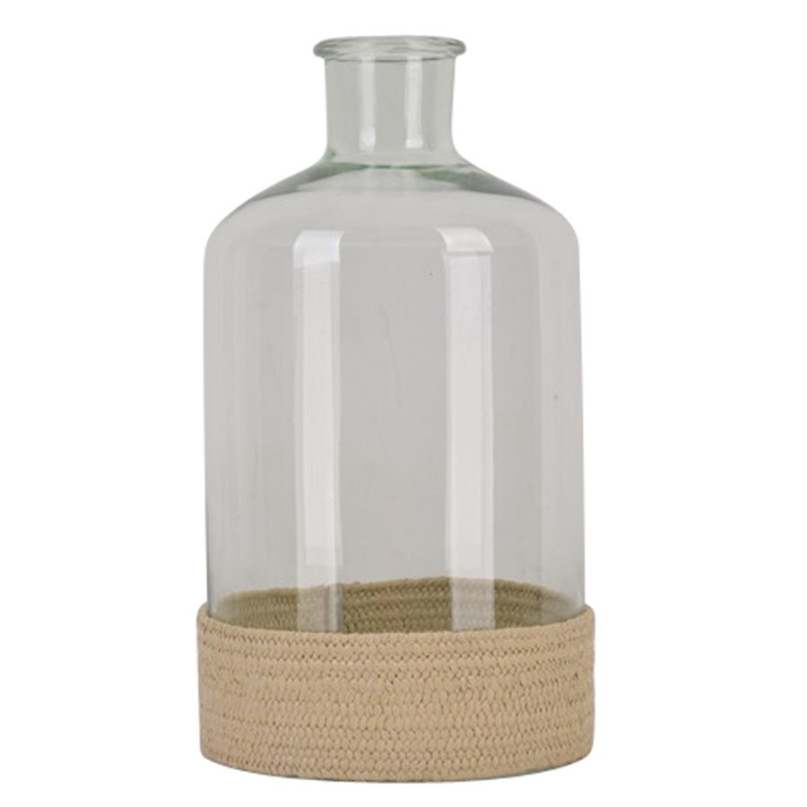 Large clear vase with woven rattan wrap