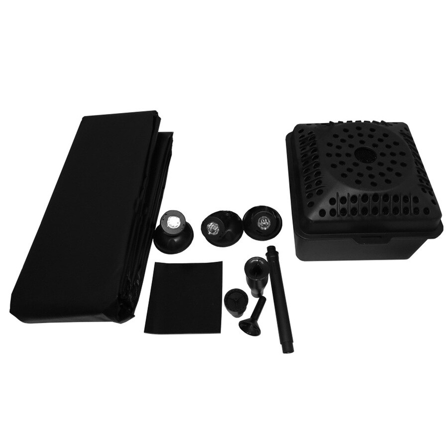Includes 250 GPH pump, filter box, 7-ft x 10-ft PVC liner, 3 LED lights and pond liner patch kit