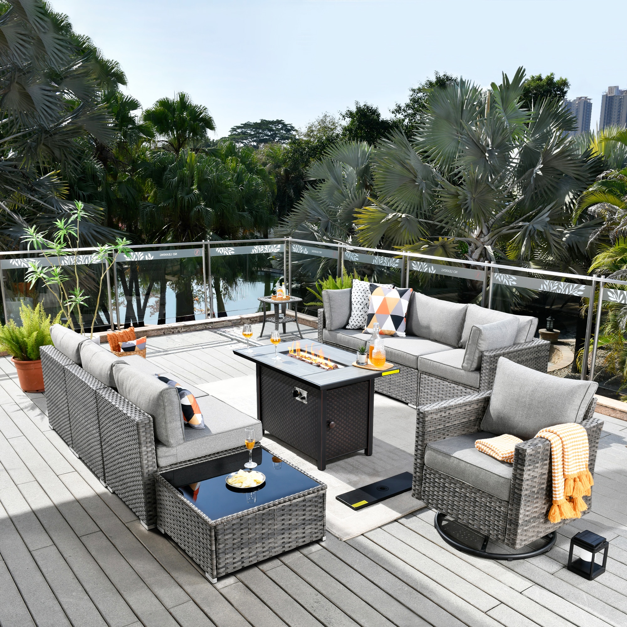 weaxty Kuuga 10 -Piece Wicker Patio Conversation Set with Gray Cushions