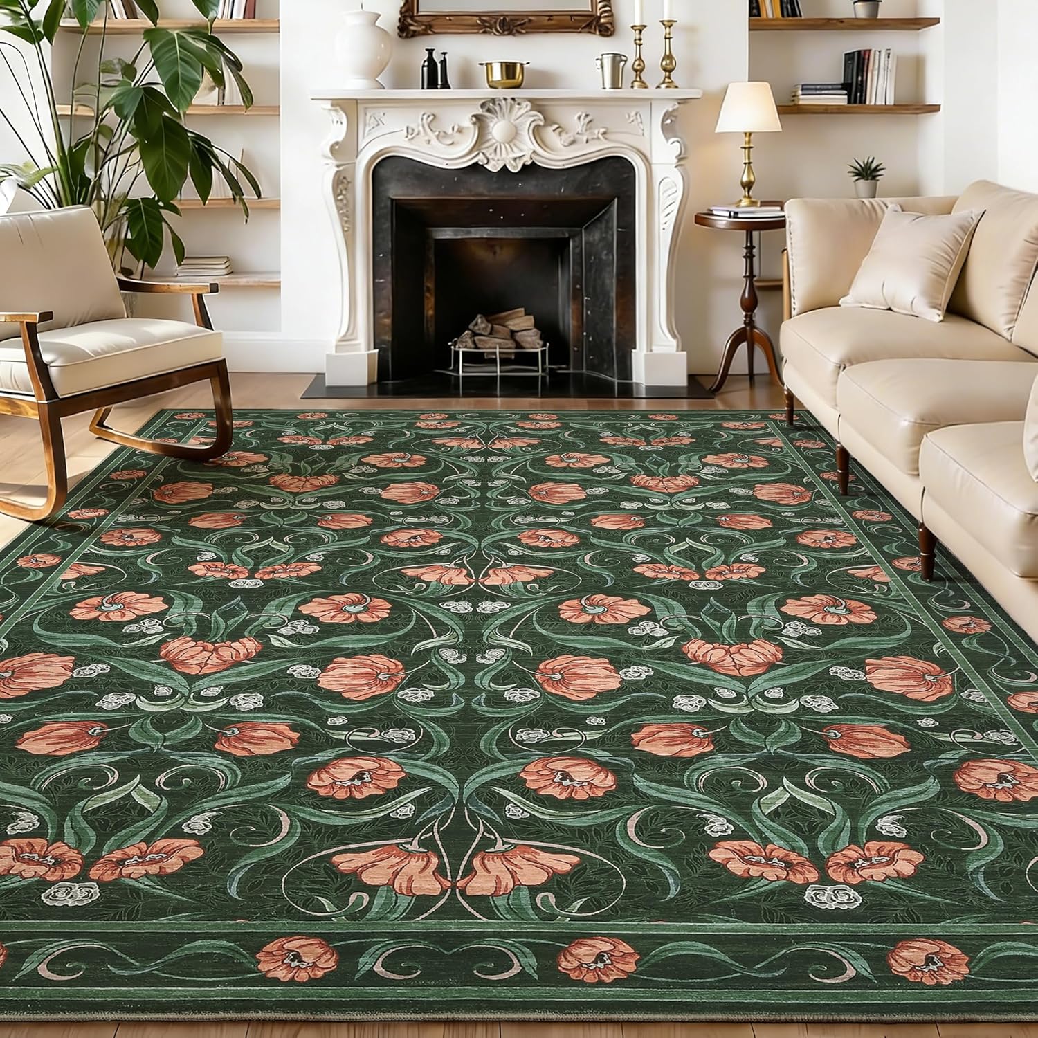 - •FLORAL AREA RUG: Featuring a modern floral pattern with geometric borders, this stylish area rug elevates any space with contemporary elegance